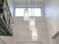 - Bright entry foyer with extra deep closet and custom shoe storage with vintage mid century blown glass lighting fixtures