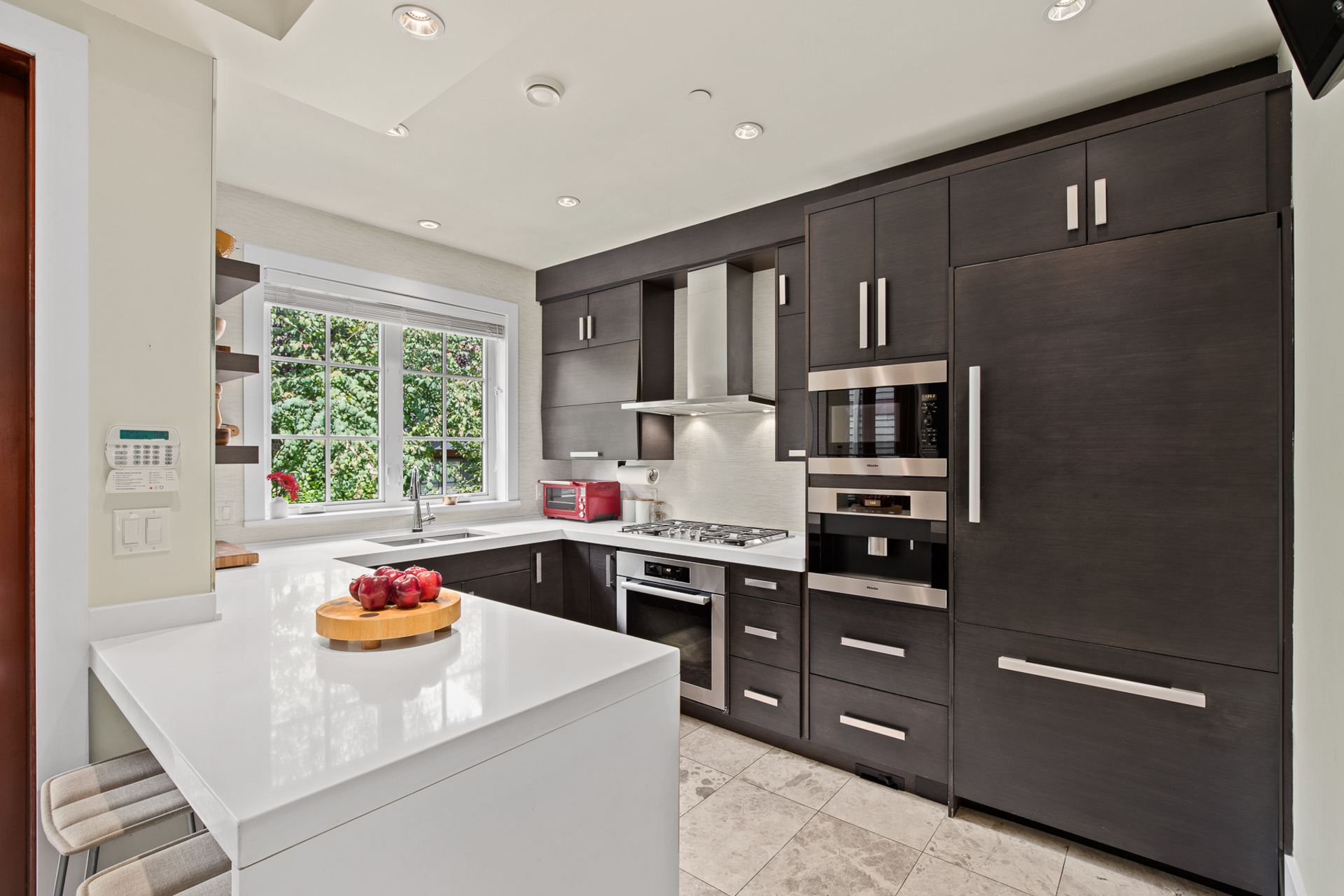 - Espresso cabinetry with soft close cupboards and drawersÂ
