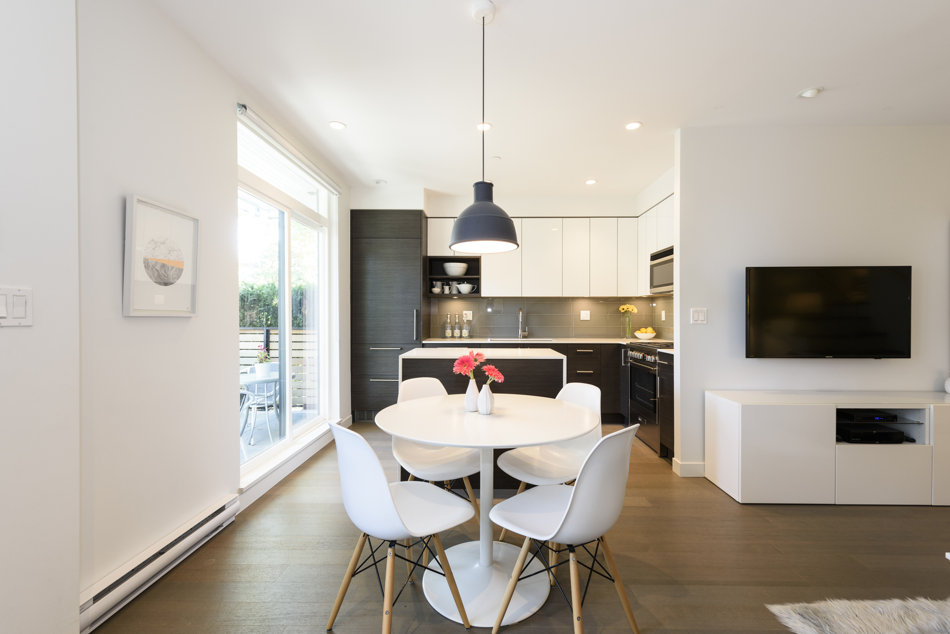 Q16 - One of Mount Pleasant’s finest boutique townhome complexes built by Handmade Contemporary Homes. This wonderful unit offers almost 1300 SF of contemporary living space on 3 thoughtful levels. Main floor offers open concept living dining and modern kitchen with separate island and sliding glass doors to your private patio. A pretty powder room and additional hidden storage complete the floor. Upstairs you’ll find a generous Master bedroom with private ensuite and balcony, laundry and bonus storage. Above are 2 additional bedrooms and lovely full bath. The cherry on top is your private roof top deck where you can entertain all summer long. Finishings are lovely throughout and the design and palette will welcome your furnishings with ease. 1 parking stall, 1 locker and walking distance to the best that Cambie and Main street neighbourhoods has to offer.