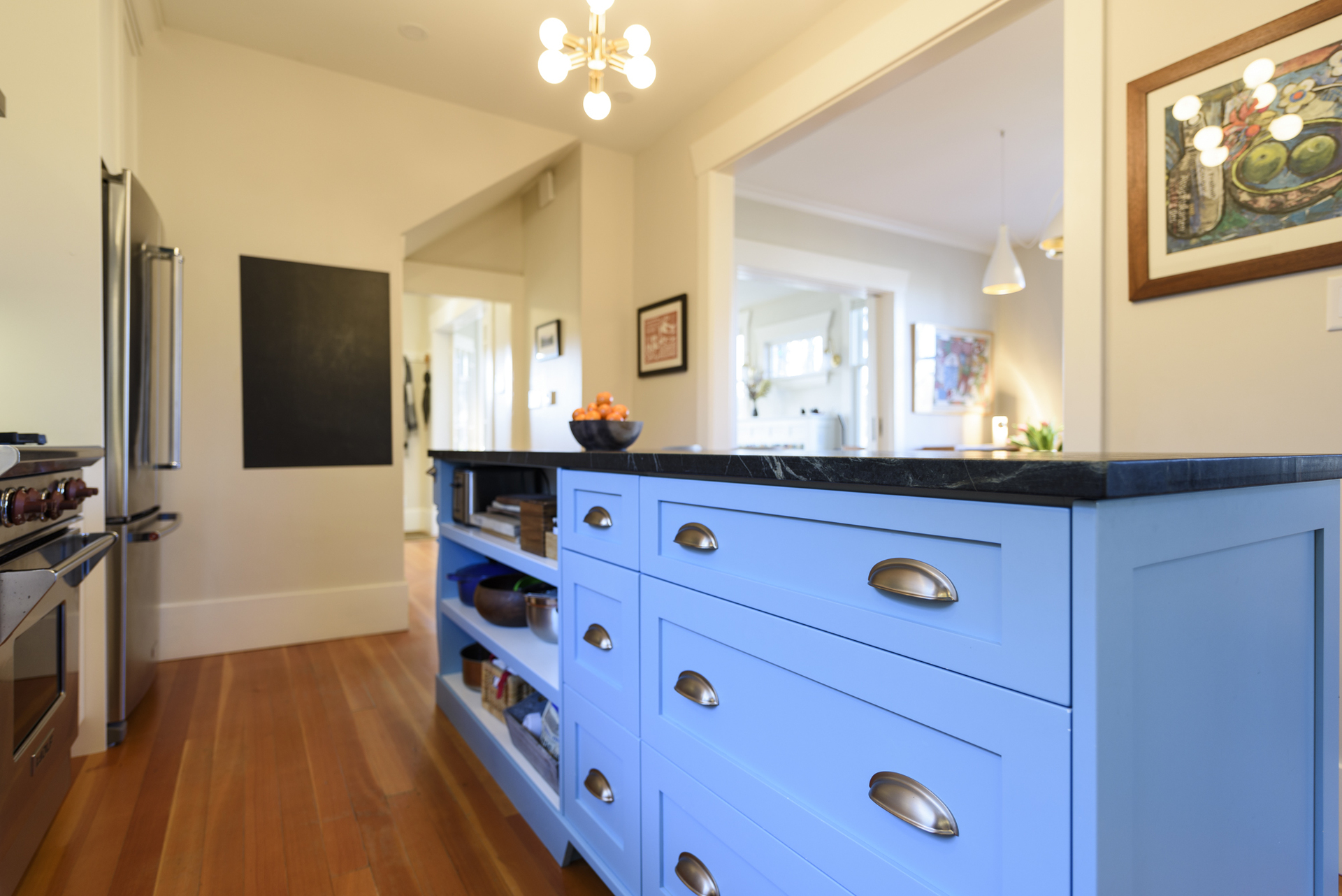 - Remaining windows are either original glass (in dining room) or custom wood windows (in living room)