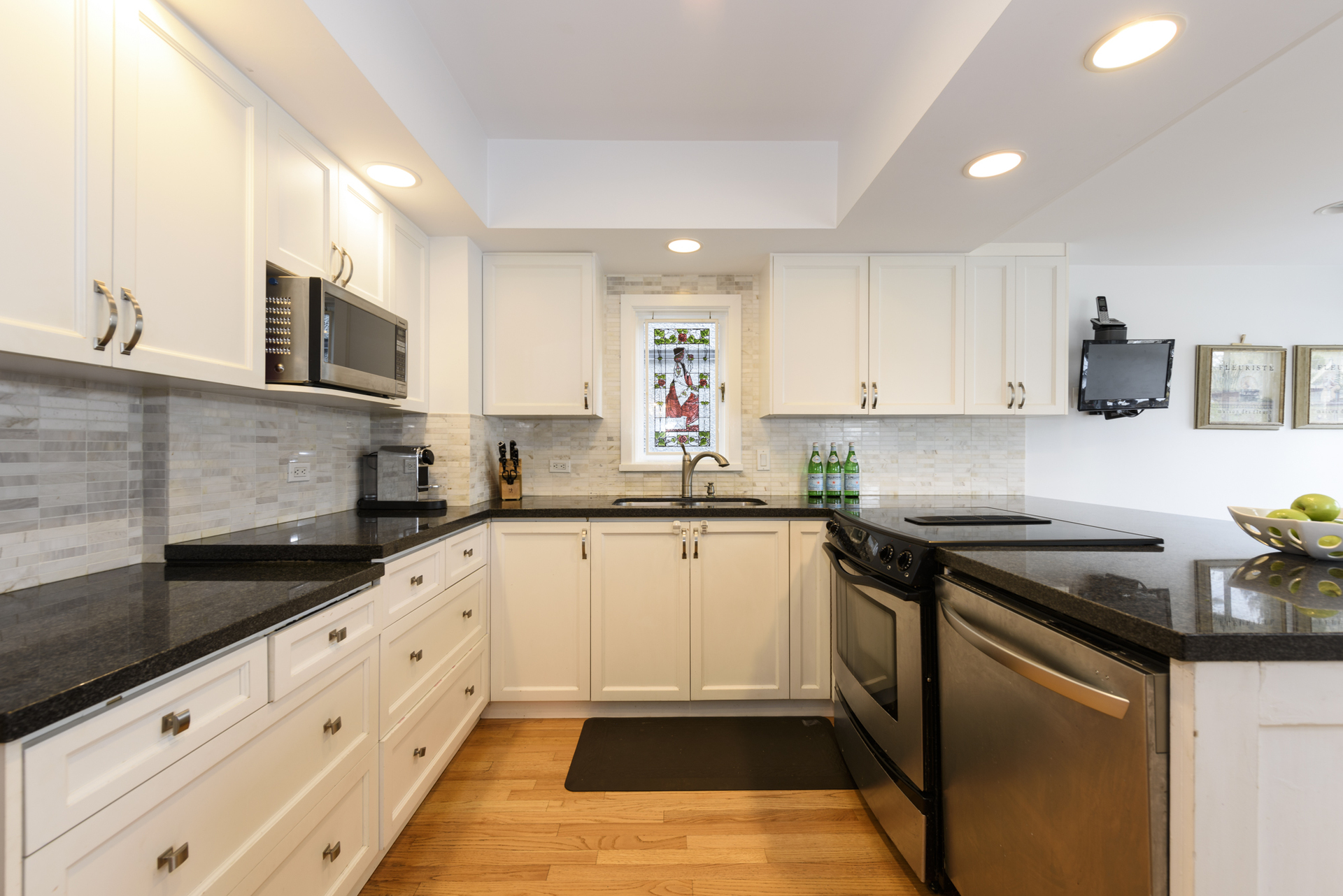 - Rich dark granite counters