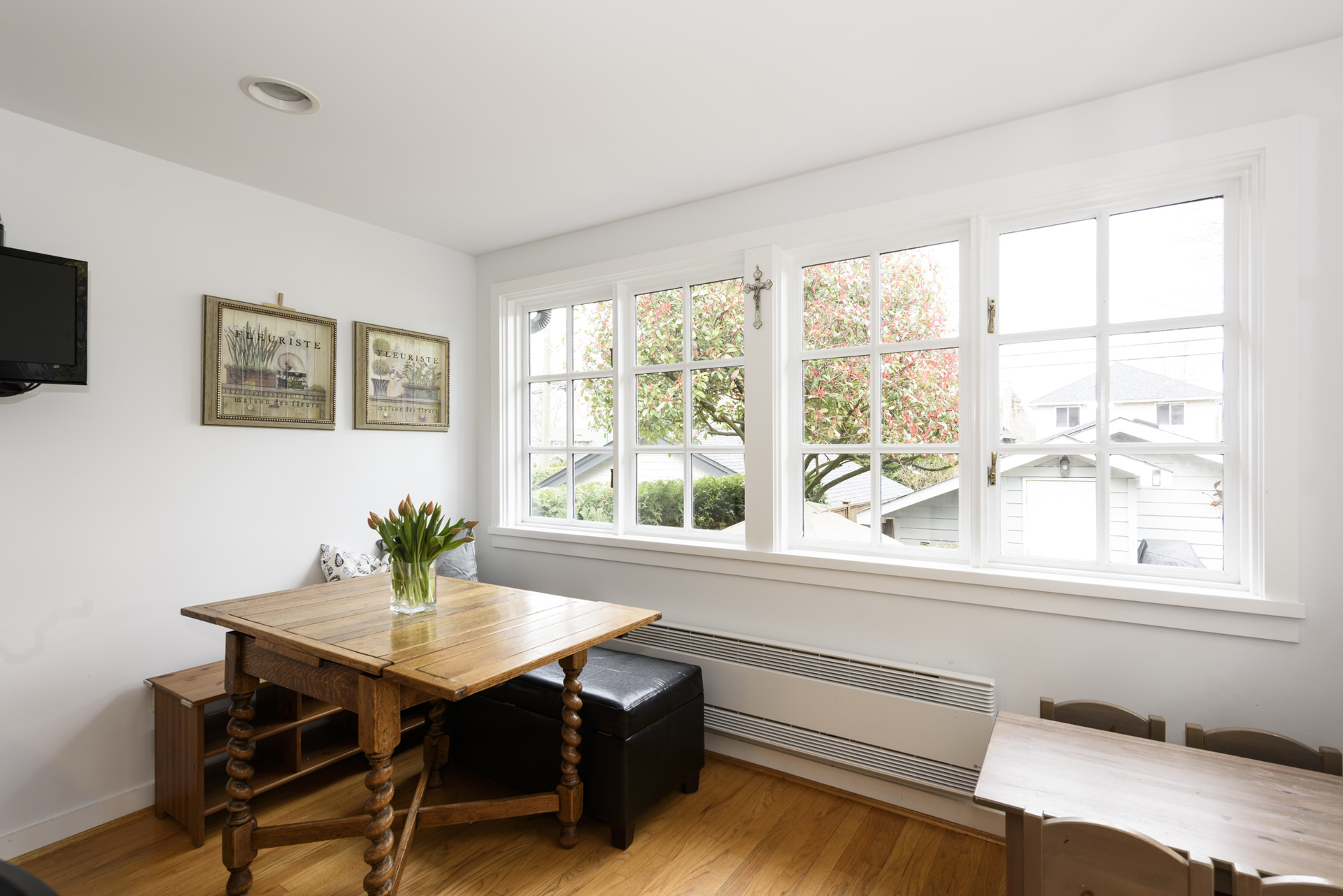 - Lovely sunroom vibe in kitchen eating area with wrap around windows