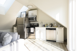- Stainless steel beverage/wine fridge in island