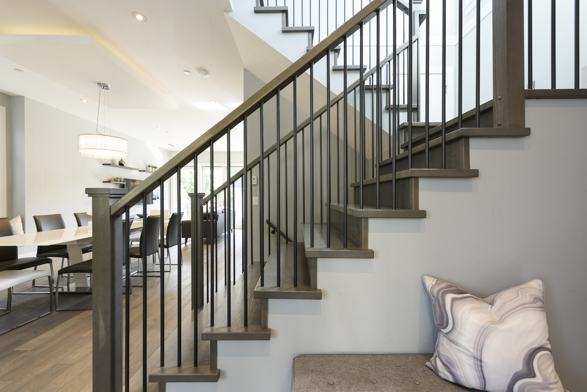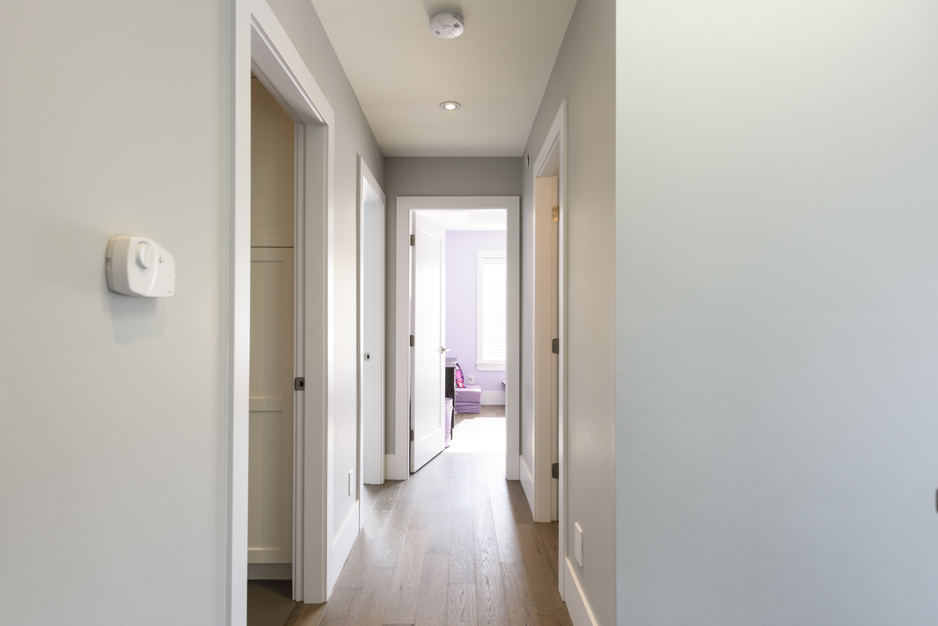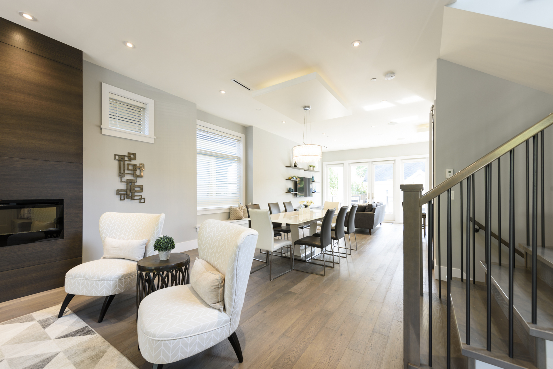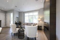- Warm engineered hardwood floors flow throughout