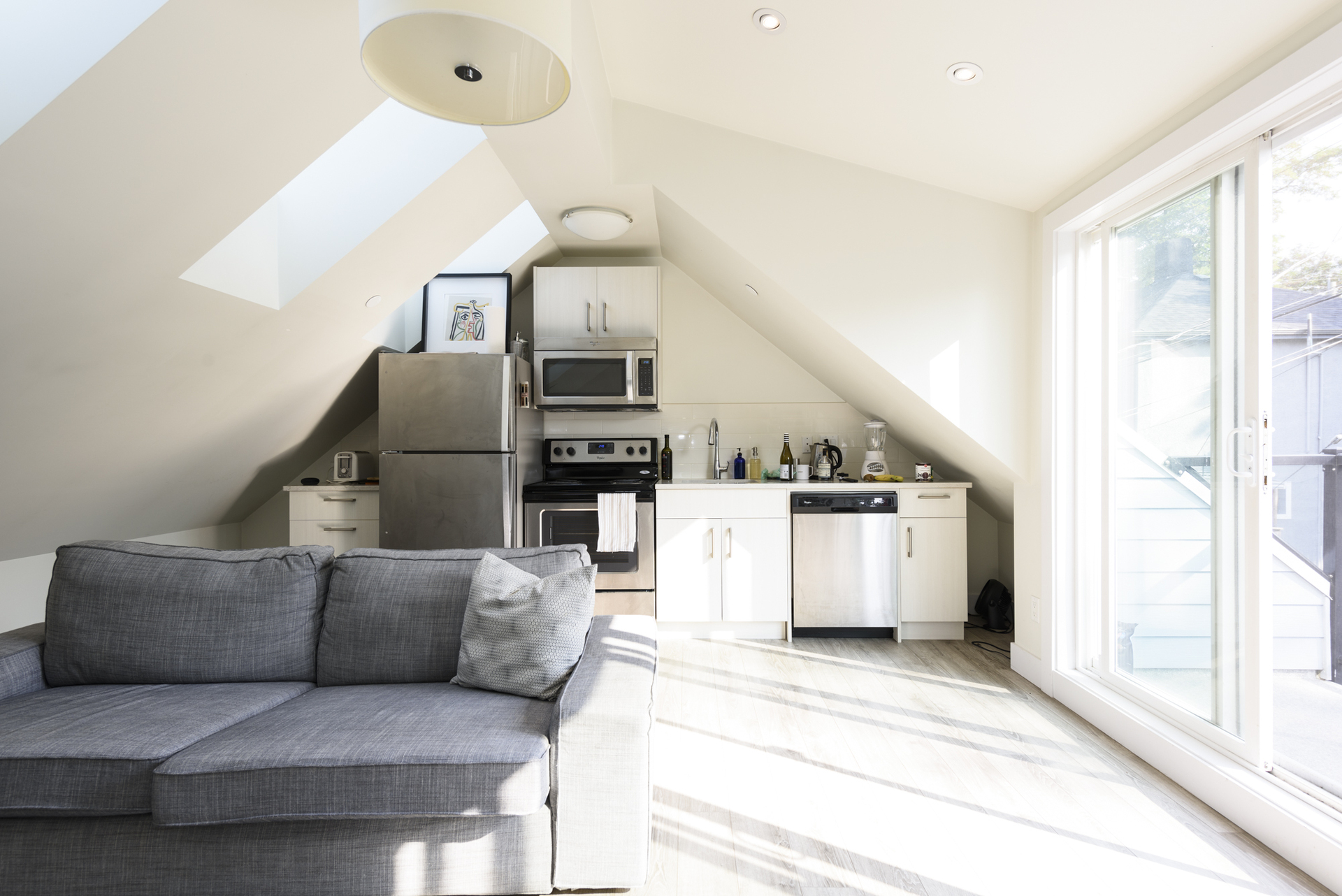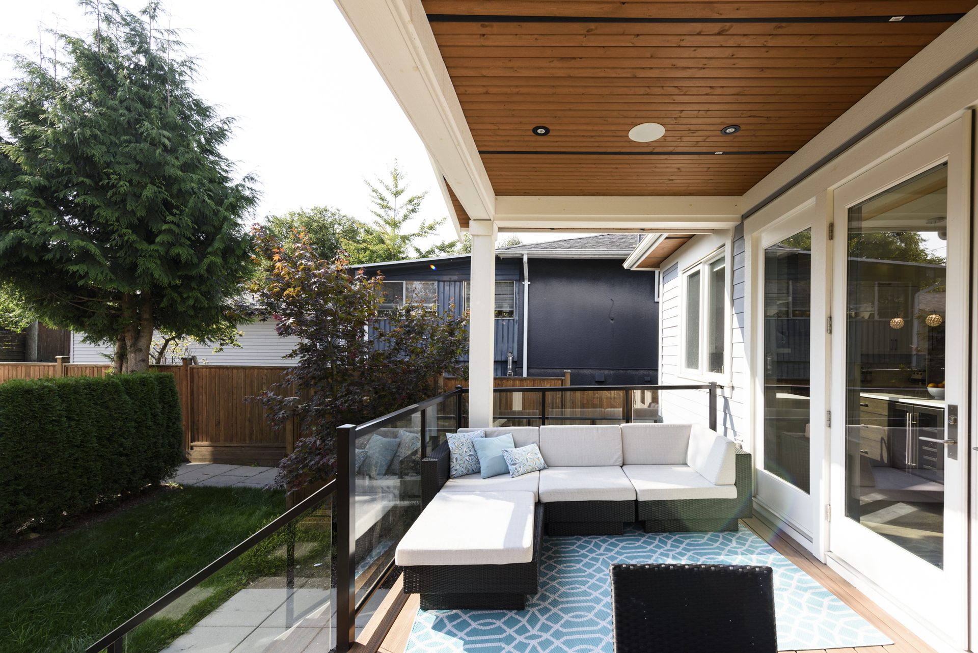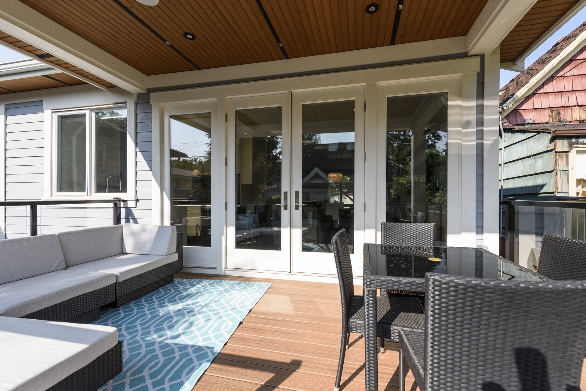 - Sunny South facing back deck accessed by floor to ceiling large glass doors