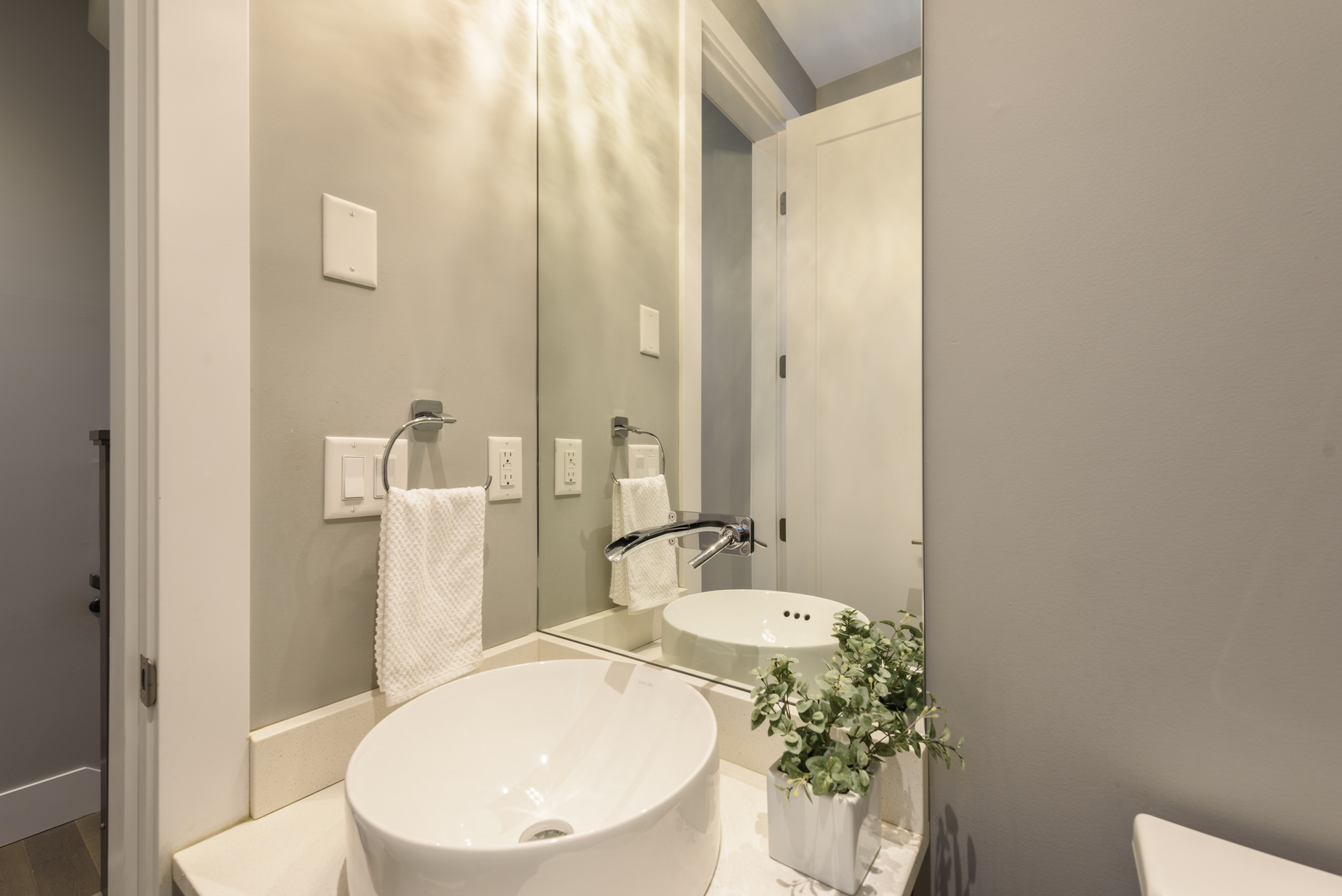 - Kohler circular vessel sink (powder room)