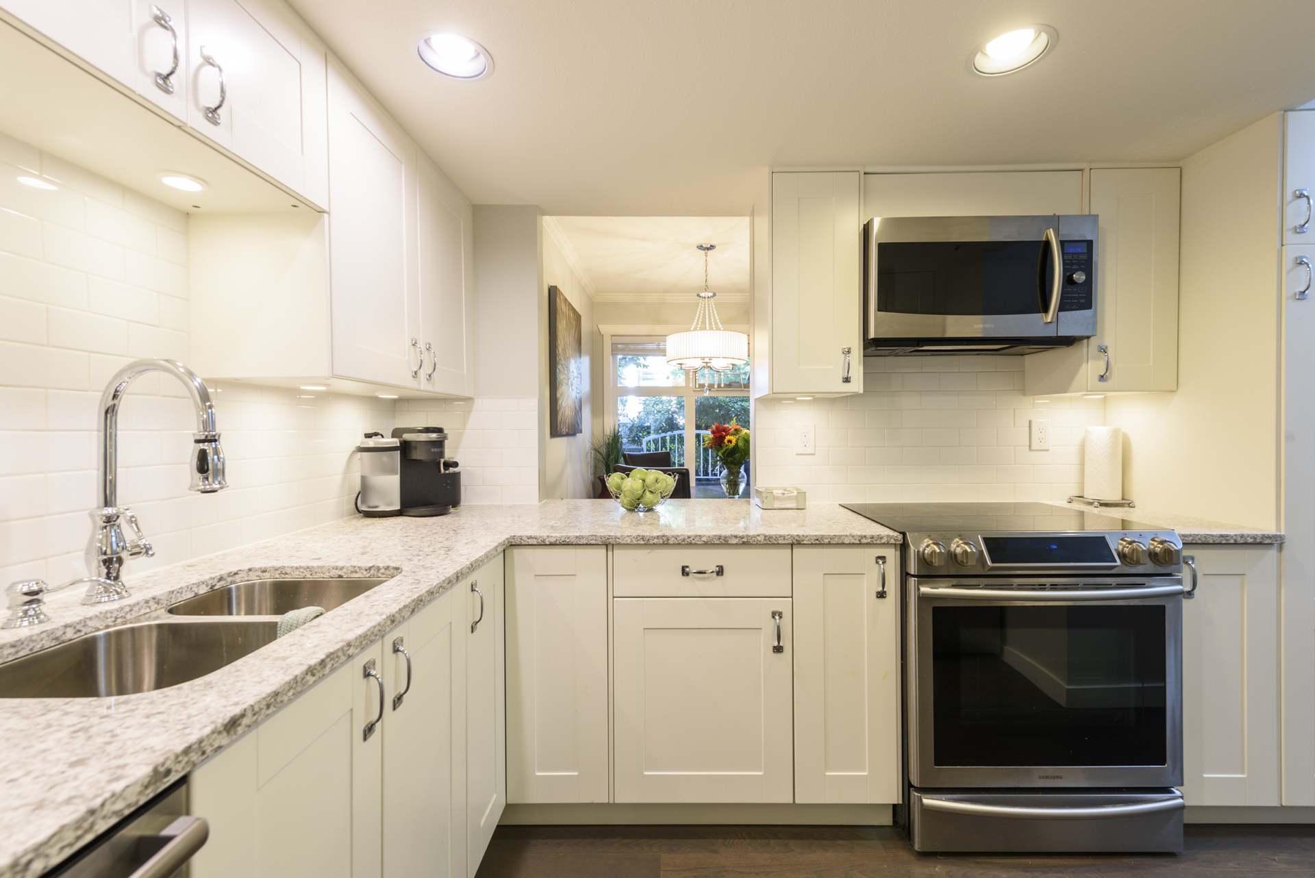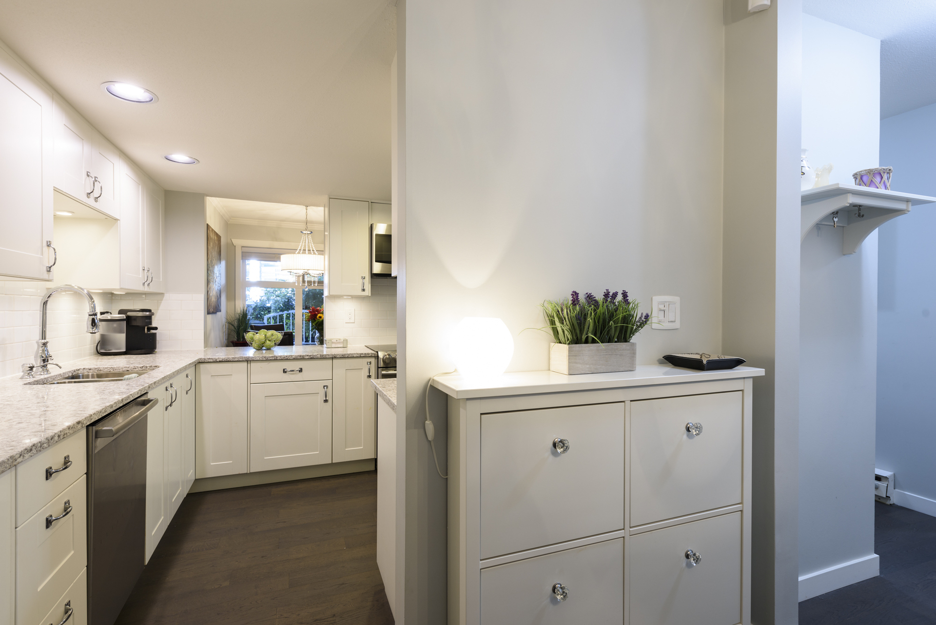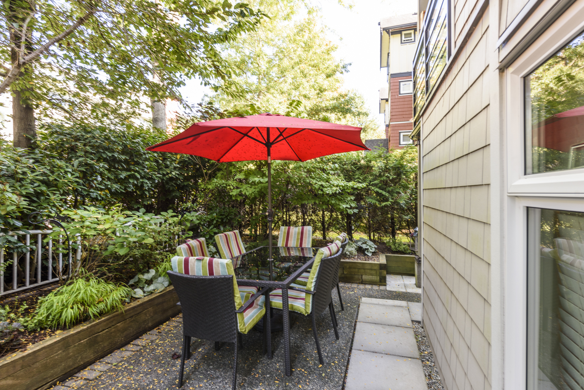 Townhouse or condo? HUGE outdoor space. Massive at 1180 sf and even 2 parking stalls. This totally renovated one level garden unit has incredible room sizes and finishings. No compromise on space and lifestyle. Just a really functional lovely bright renovated home that has two full bedrooms, great