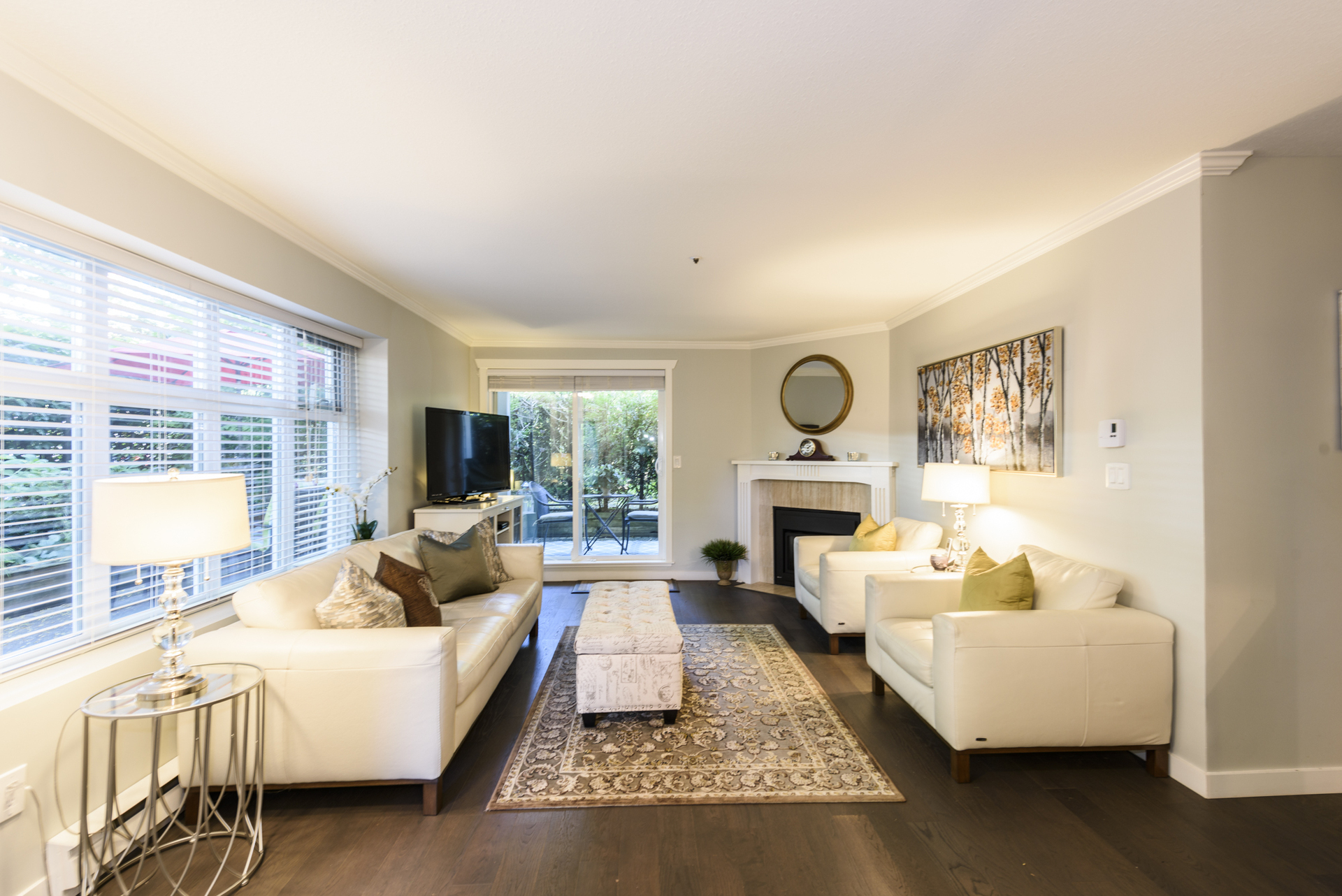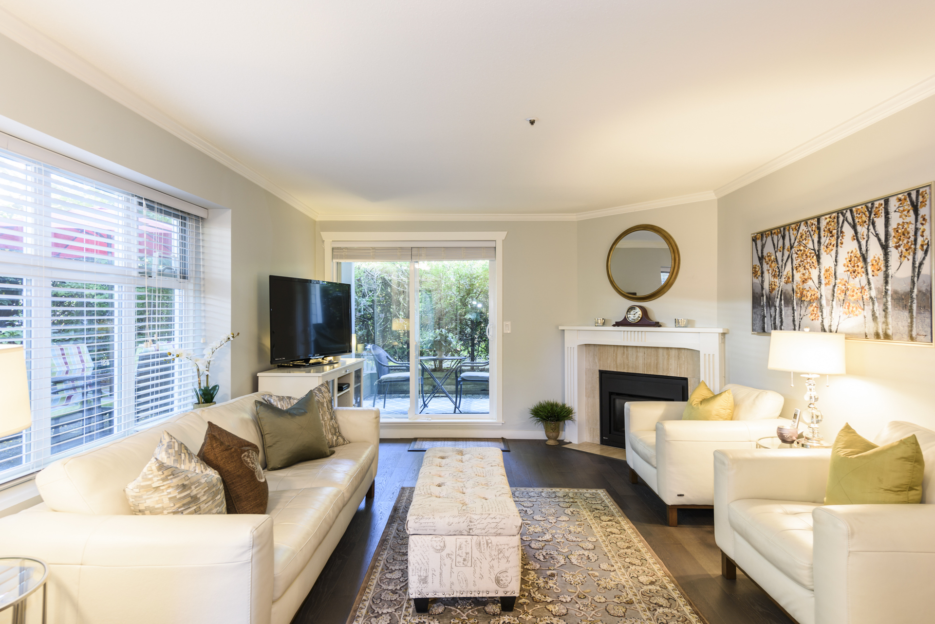 Townhouse or condo? HUGE outdoor space. Massive at 1180 sf and even 2 parking stalls. This totally renovated one level garden unit has incredible room sizes and finishings. No compromise on space and lifestyle. Just a really functional lovely bright renovated home that has two full bedrooms, great built ins, two full bathrooms and even massive living room with a fireplace... did we mention the wrap around private deck? View our virtual tour for this very special space.