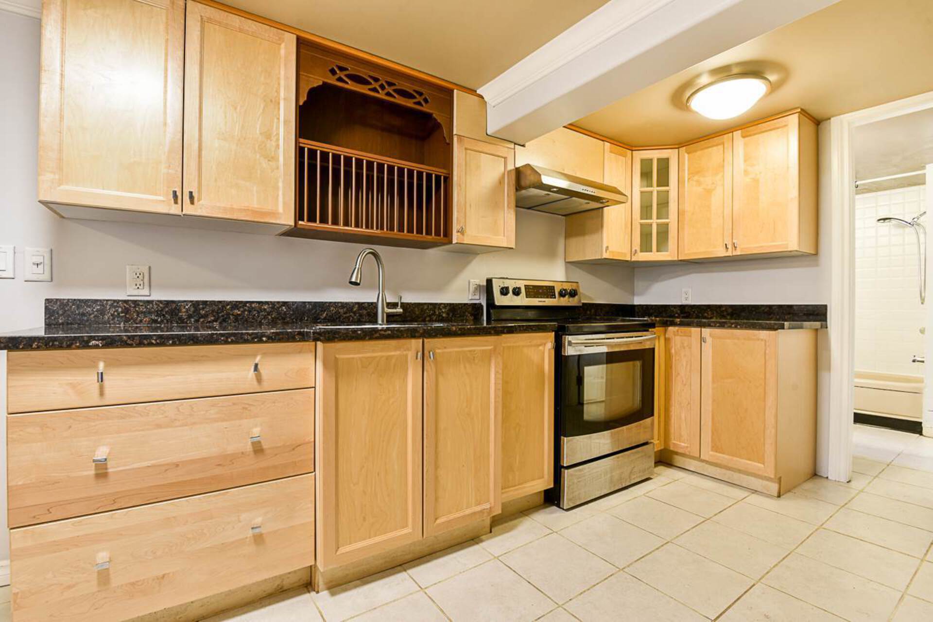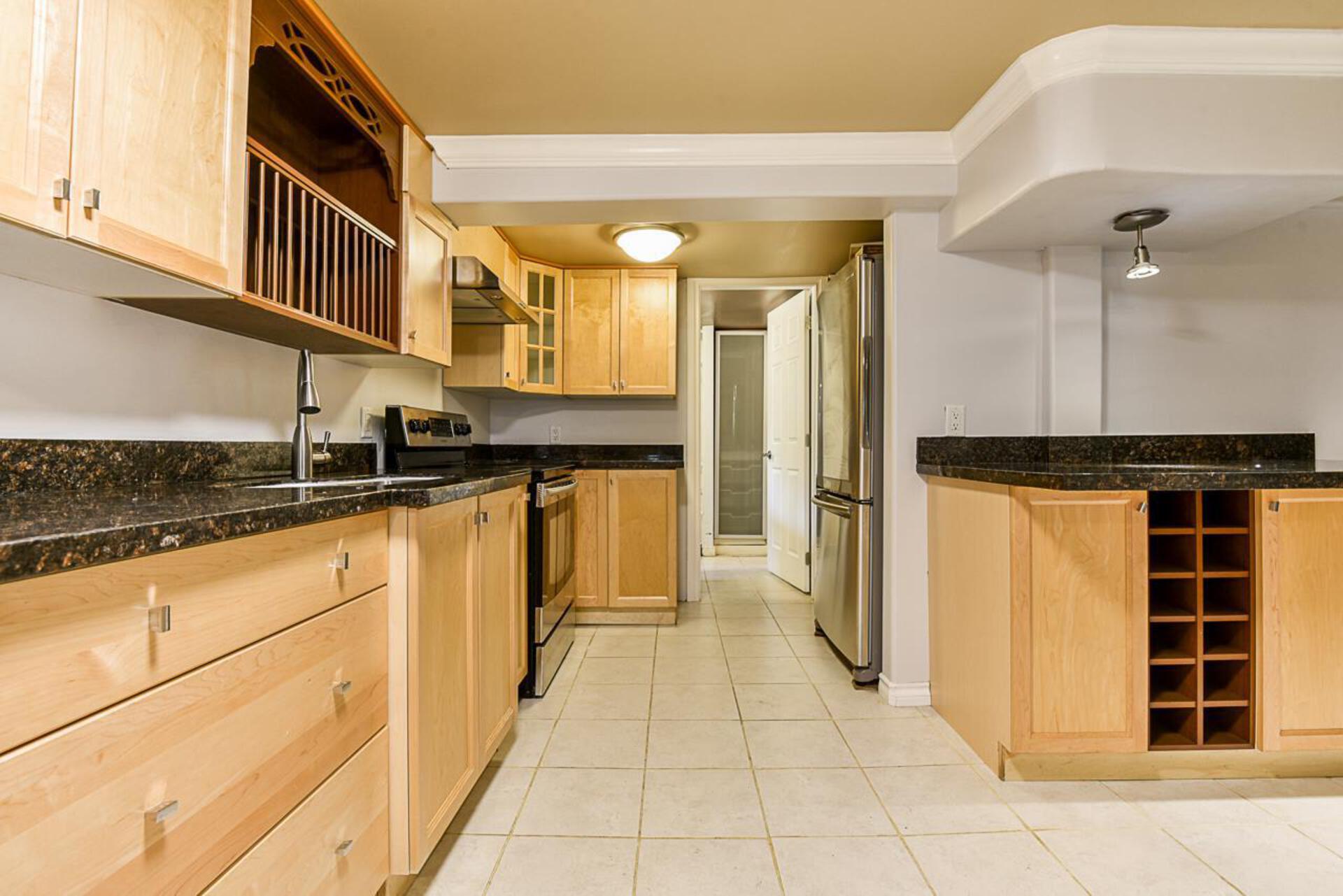 - Kitchen: Expansive granite countertops, wooden cabinetry and tonnes of organized storage, double stainless steel sink with pull out faucet, Samsung stainless steel flat top stove, Samsung stainless steel fridge with bottom pull freezer