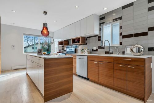 This is the ideal Vancouver special you have been waiting for! Overlooking Grays Park, and seconds away from McBride Annex. Upper level offers 3 bedrooms, 2 full baths, a huge open plan for main living, including a home decor magazine-like oversized kitchen, separate mud room and laundry and balcony that overlooks the park. Lower level offers an upgraded suite, huge office, which has potential for an additional bedroom. Contemporary finishes throughout with thoughtful display and storage option.
