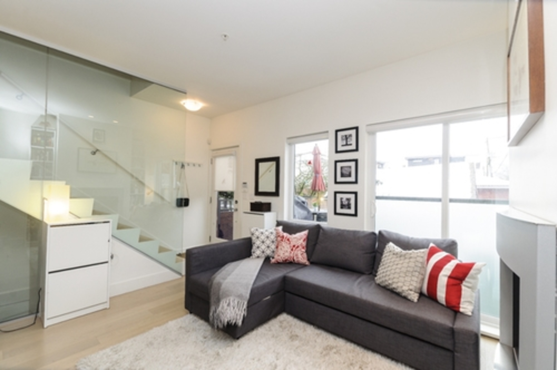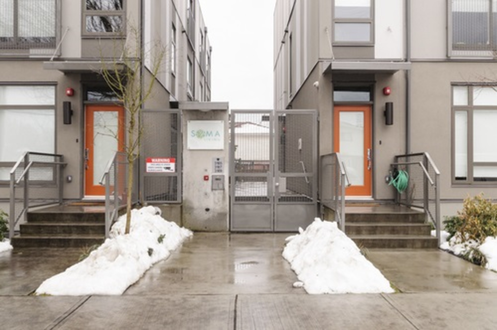 Rarely available & smartly upgraded, this spectacular end unit townhome in SOMA Living is truly special. Spacious & bright, this home offers a gorgeous layout, with open concept main living, Juliette balconies on 3 levels, extensive use of glass railings to lend to the open feel & a smartly redesigned lower level for media room, guest room or extra bedroom. Kitchen is sleek & offers a larger working island than most, a stunning clean lined gas fireplace & engineered hardwood flooring throughout. Upper levels provide for 2 very spacious bdrms, huge W.I. closet, 2 full baths & easy outdoor access to your private roof top patio with views. This superior townhome is meticulously maintained & located in Mount Pleasant's superior location. OPEN HOUSE: Saturday Feb 18th 2pm-4pm