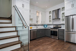 Strathcona Gardens - a fabulous boutique strata offering the coveted front townhome with private gated outdoor space and wonderful views to the north shore as you sit perched above the street! Contemporary in design and traditional in its detailing, this home is perfect for the young family or downsizer! A traditional covered front porch greets you and welcomes you in to this lovely open floor plan. Main floor is stunning with open living and dining space, and a gorgeous spacious kitchen! Design detailing in the cabinets is evident and makes for such a pretty kitchen. A po