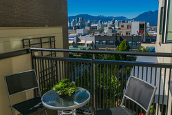 The Elements! - Come live in one of the most sought after locations in Vancouver, West Mount Pleasant. Nestled in this pocket between Cambie and Main Street is this stunning 1 bedroom and den suite with an awesome floor plan that also offers recent updates. With a massive outdoor patio this home offers an enviable entertainment space with stunning downtown and Mountain views. Refinished fir hardwood throughout, 1- ft high ceilings, exposed brick work and stunning wood doors and elements throughout. In-suite laundry, 1 parking included and ample storage within the unit.