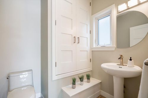 - 6 bedroom home: 3 bdrm main suite with 3 bedroom basement but clever design allows one of the basement bedrooms to be used as part of the main suite (via simple 1 hr effort to move a deadbolt from one door to another. Then it would be 4 bdrm main and 2 bdrm bsmnt suite) or remove all interior door locks to join the basement suite to the main suite for your large family