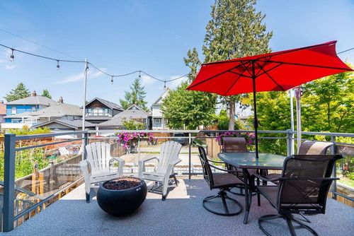 - Fantastic well appointed large sundeck off the family room with double-wide-opening sliding glass doors to really connect the spaces. Overhead mounted speakers, retractable awning, built in over-head gas heater (think rectangular restaurant-patio-style), built-in bbq and a fire pit