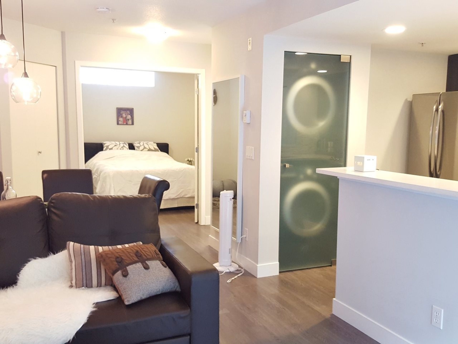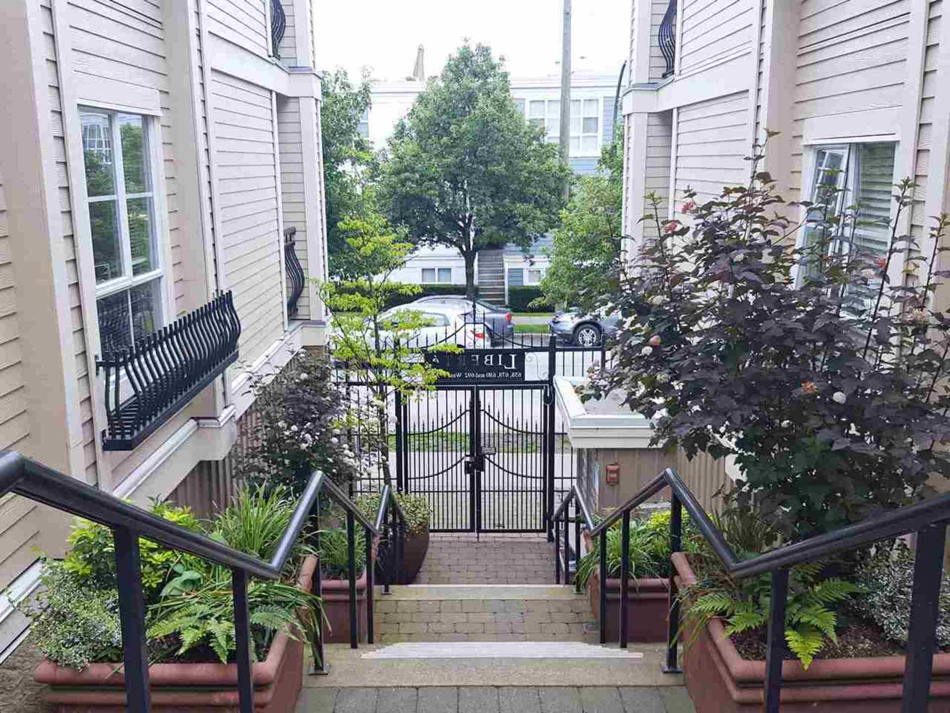 LIBERTE, functionally designed townhome-like Fairview residence with spacious and open 1 bedroom and den layout. Private courtyard patio, open plan kitchen with quality gas range/microwave, quartz counters, soft close cabinets, Moen fixtures, 30" Kraus sink, stainless appliances, newer washer/dryer, good quality laminate flooring and so much more. Roof was replaced in 2014 ~ 2015. Fully rainscreened. Steps away to Canada Line, Cambie Rise shopping, Broadway and Olympic Village. 1 large size parking spot and 1 storage. Must see!