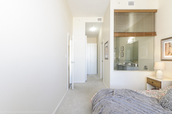 WOW! This might be the rarely available gem in the sky you’ve been waiting for. Elevator access to your semi private outdoor entry with the feel of a townhome. This spacious 3 bedroom + office, sub-penthouse corner suite at over 1300 SF is spectacular with 10.5ft ceilings and floor to ceiling windows at every turn. It features open concept living, engineered hardwood throughout, extremely generous bedrooms, 2 contemporary full beautiful baths, separate private office and huge walk in storage pantry. South, North and East-facing exposures offer gorgeous mountain and city views and make this condo stunning, sunny and bright while offering tremendous privacy. Particularly amazing is the outdoor space with 2 huge North and South facing private patios and a massive semi-private terrace. which provide extra privacy to the unit and room to entertain. 1 locker, 1 parking and located walking distance to all the best amenities of Olympic Village.