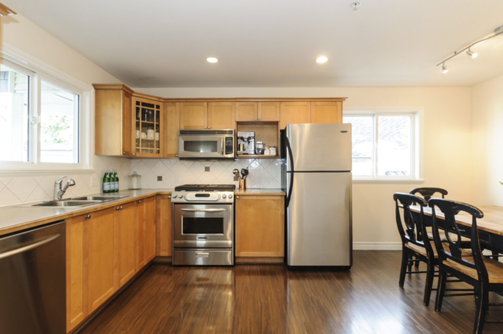 Fabulous Townhome in sought after Kits! This spacious 3 bedroom and 3 1/2 bath unit is nestled in a 4 unit boutique strata in one of the most desirable areas in the city. The main level is open concept living/dining with a feature gas fireplace and a great window seat. The kitchen offers plenty of storage and working countertop space and has top of the line stainless steel appliances including a gas cooktop. There is also access to a covered balcony off of the living room and a 2 piece powder. 3 HUGE bedrooms are all equipped with full ensuite baths and access another patio off of the lower level. Upper level bedrooms offer incredible mountain views. Laminate flooring and beautiful crown mouldings throughout, topped with a new roof, furnace, hot water tank and fresh paint. This unit includes 1 parking and allows pets & rentals and is walking distance to amazing schools and parks.