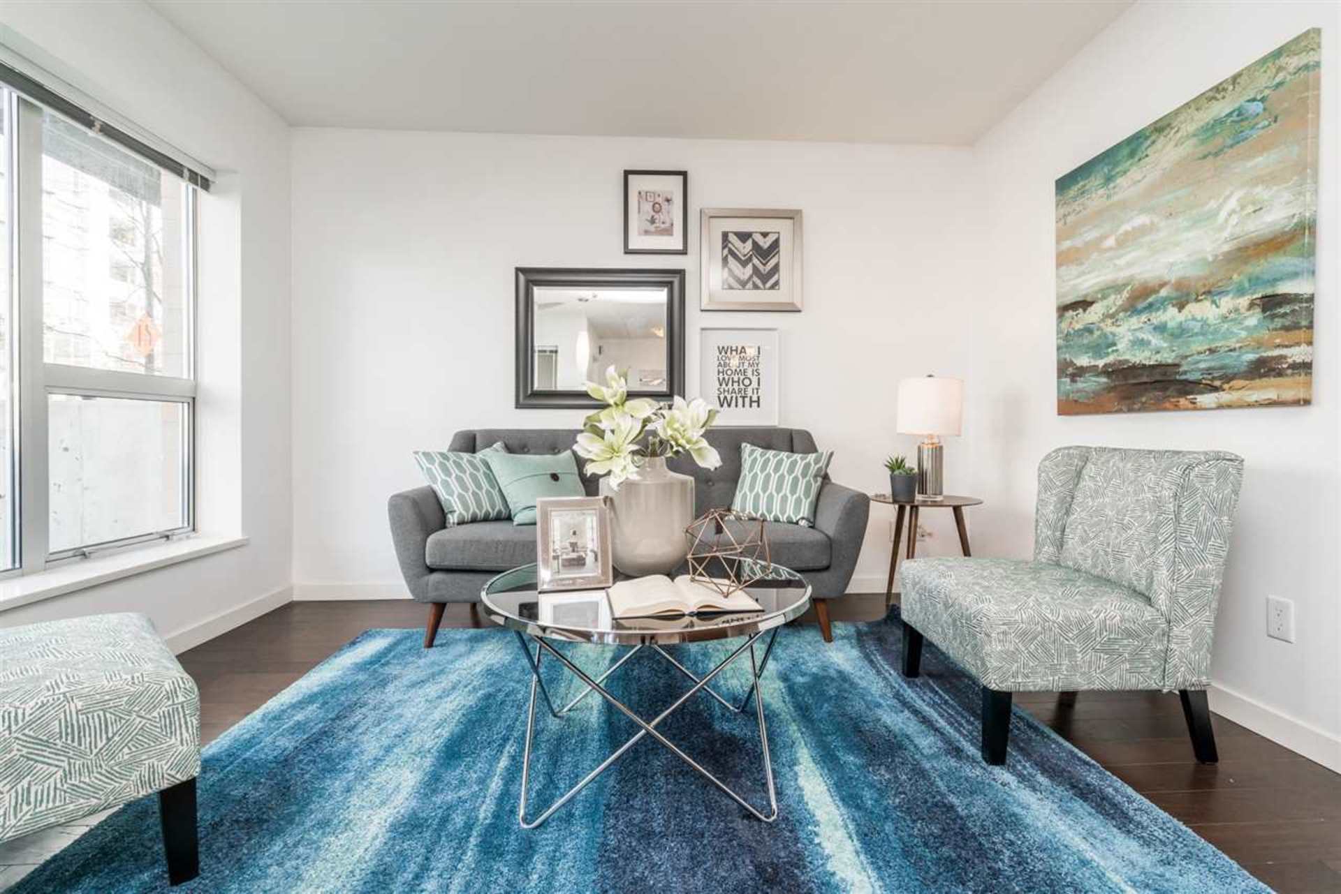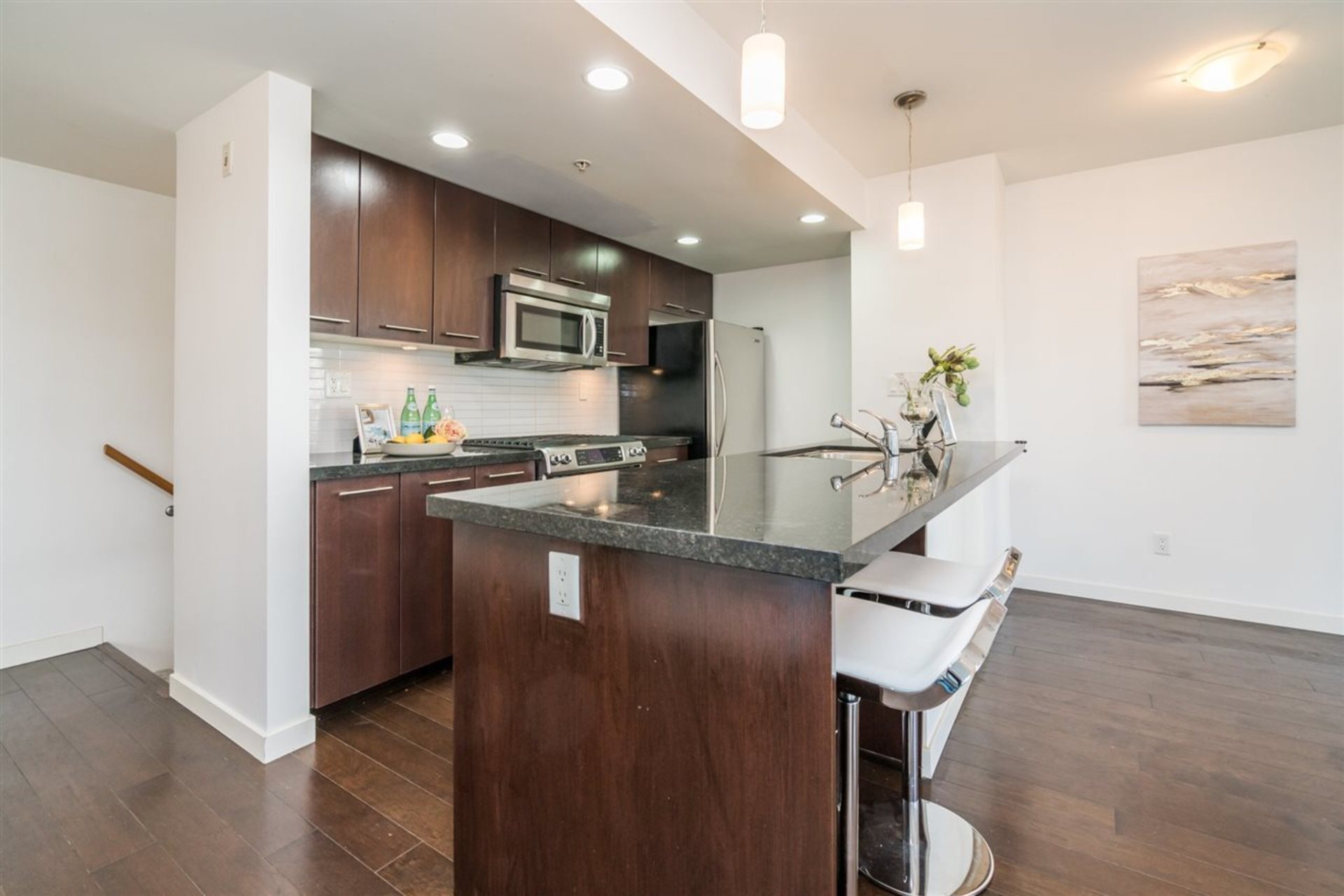 Welcome to ALINA. This concrete building features a 2 bedroom two level unit that has a large private patio. There is access from ground floor for convenience or through the lobby. Very classic design with hardwood flooring and quartz counters to match. Great open space to engage from kitchen to dining to living area. Private second level for sleeping area with a master bedroom plus ensuite and a large second bedroom. Bonus storage room in the unit. Located in Central Lonsdale with all convenience just a block away. Major banks, Whole Foods, Club16, and many great local diners and cafe. Walking distance to SeaBus for quick commute to downtown.