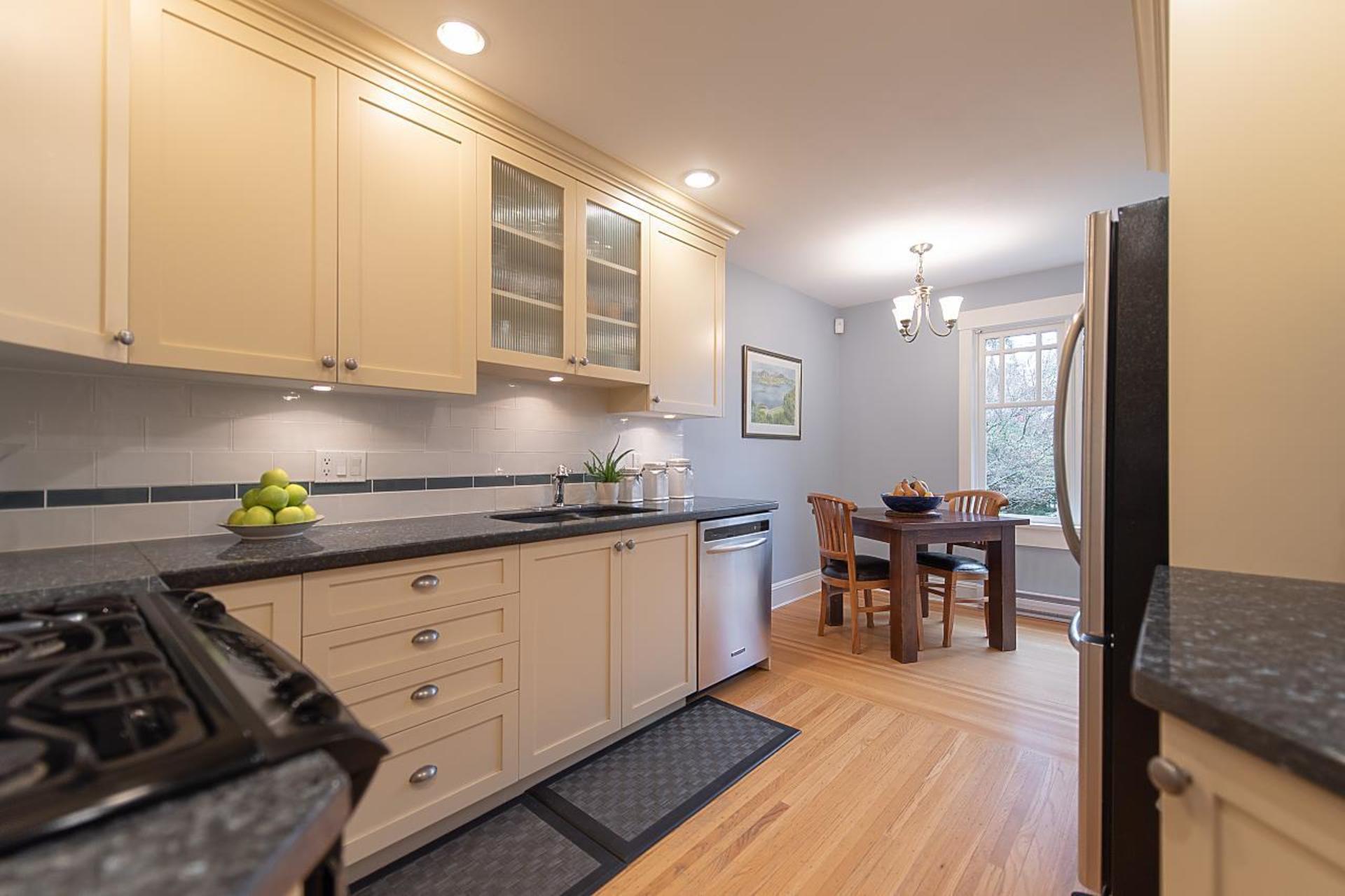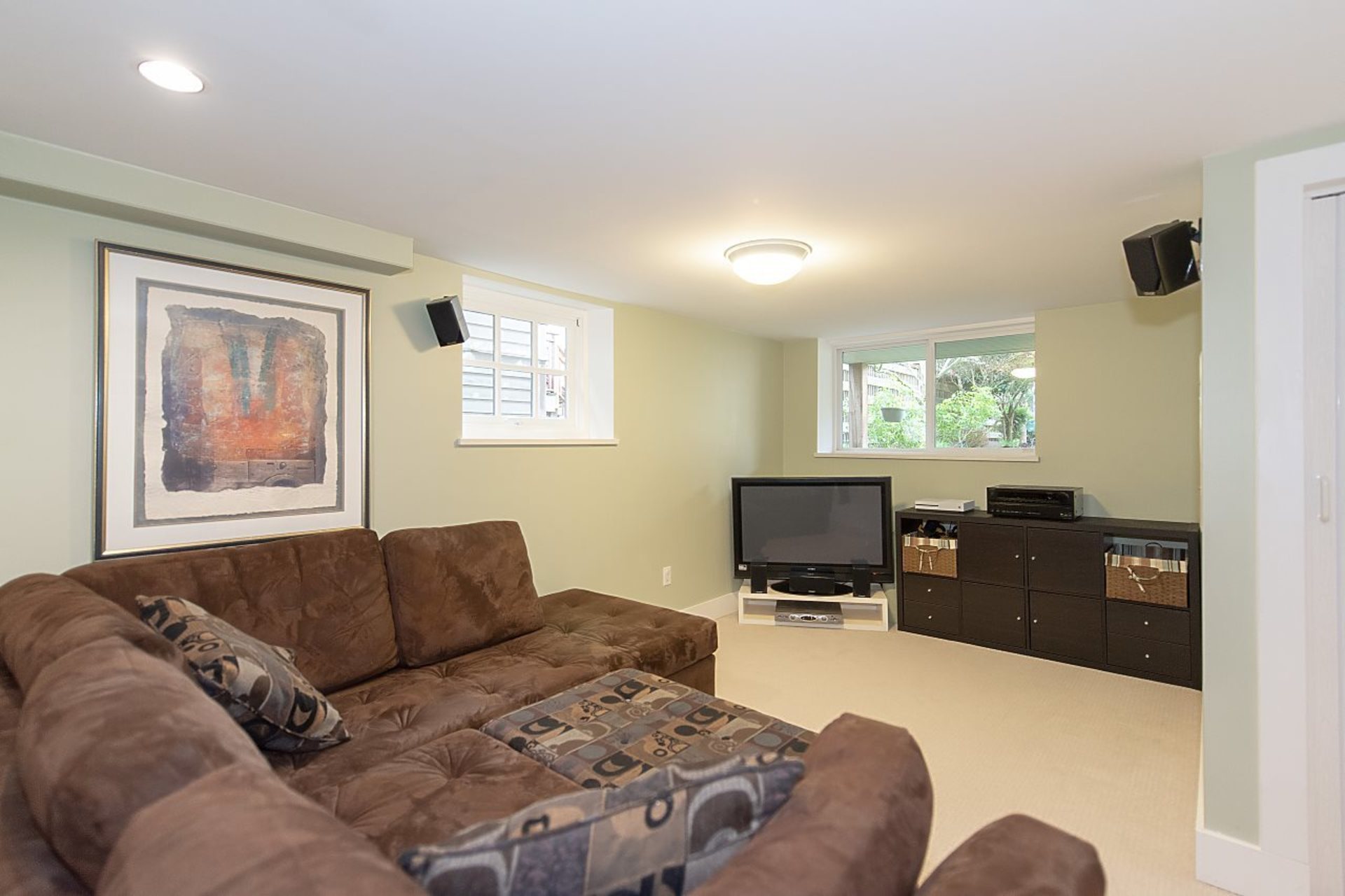 Terrific Character Home in sought after Cedar Cottage & Charles Dickens catchment. Situated on a quiet tree-lined street yet walk to Glen Park, cafes, & shopping. The home has been totally upgraded, enhancing the character, all with permits in 2007-2009. The bright south facing kitchen has granite, eating area, S/S appliances, a formal dining room,& glass french doors to a bedroom/den. 3 bedrooms up & family room & guest bedroom down. Updates include high-efficiency windows, LED lighting, wiring, plumbing, roof, foam insulation, furnace, hot water on demand. The garage has a secure roll up door, bike racks, built in shelves, cabinets, a workbench & 220 outlet! The gorgeous landscaped yard is perfect for gardeners & summer BBQ's.