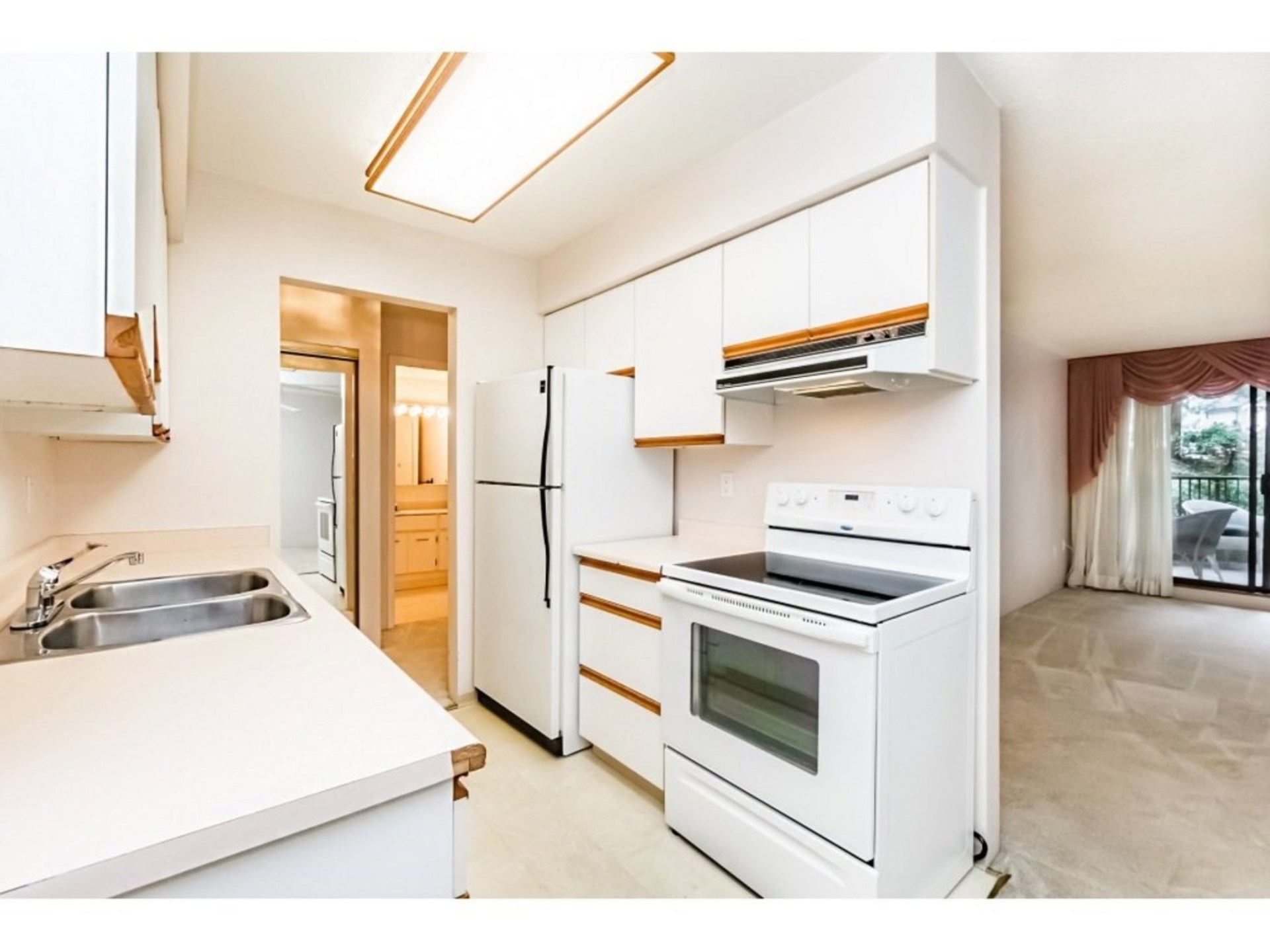 2 bedrooms, 830 sq ft at Park Villa in Sapperton! Plus huge 230 sq ft patio off living room situated in a very nice setting. Spacious living room w/ separate dining area. Very quiet end unit that does not share walls on both sides. Maintenance fee includes HEAT, hot water & LAUNDRY! 1 parking,