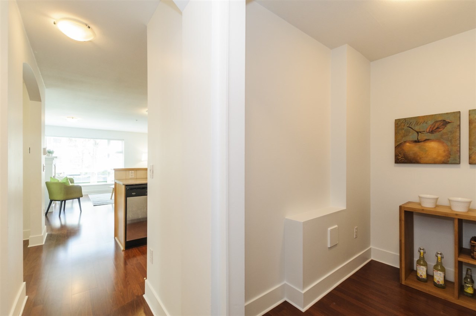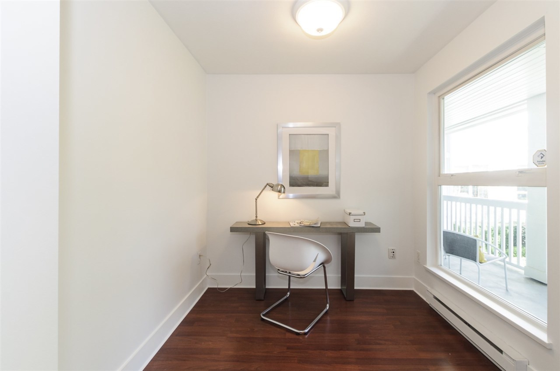 GREENWICH! This Polygon development is perfectly located in Kits. The unit offers: 1 bed, 1 bath, and great sized den; open concept; gas fireplace; gas range; HUGE in-suite storage; laminate floors; and large patio overlooking the courtyard. The building is pro-actively managed and well maintained