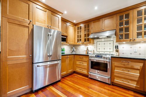 - Stainless steel appliances including; GE gas cook top stove, GE double door fridge with bottom pull freezer, Asko dishwasher