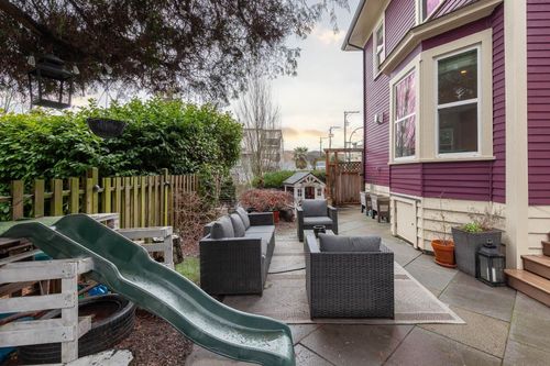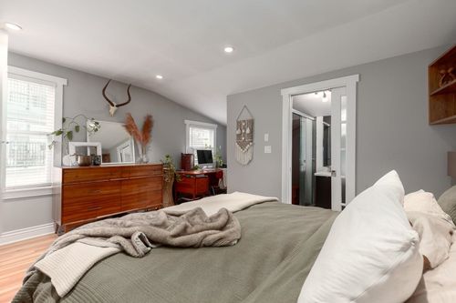 The one you've been waiting for! This fully renovated heritage house has water views and a secondary suite located on Wall Street, at the quiet, traffic-calmed end of McGill. The house has undergone extensive updates with a to-the-studs renovation in 2011 keeping a great mix of heritage elements but adding modern design and amenity. Fantastic layout with 3 beds & 2 baths on the upper (2nd) level, and a fully open-concept main level. The attic (3rd level) was also developed, adding a bonus living den/bedroom and a separate storage room. Studio suite mortgage helper w/ a separate entrance could be turned back into a garage. And in the Tillicum Annex catchment. Great views West to North from the Lion's Gate Bridge to the North Shore mountains.