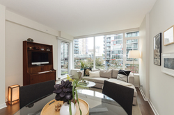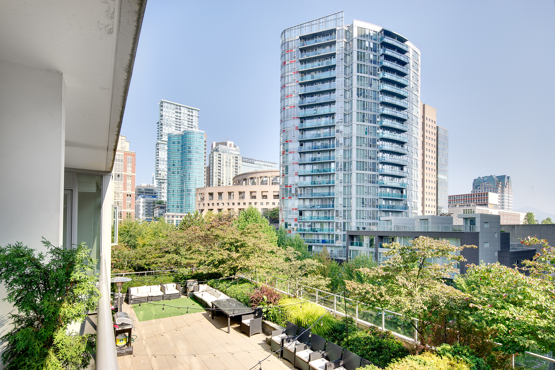 Raffles on Robson! - This open and bright 1 bedroom & flex space condo is located right in the heart of downtown Vancouver, just steps away from Yaletown. The open galley kitchen features custom espresso cabinetry, integrated fridge, stainless steel Miele oven & cook-top, dishwasher & polished granite countertops. The Spa bath has a gorgeous floating vanity with undermount lighting and marble countertop, a separate frameless glass shower and a deep soaker tub. The living room opens to a lovely private balcony with nice outlooks and peek-a-boo mountain views. Insuite laundry, & storage, 1 secure parking stall and guest parking available. Fantastic building amenities include concierge, exercise room, hot-tub, garden terrace & children's playground. Pets and rentals welcome, contact us today to set up a private viewing!