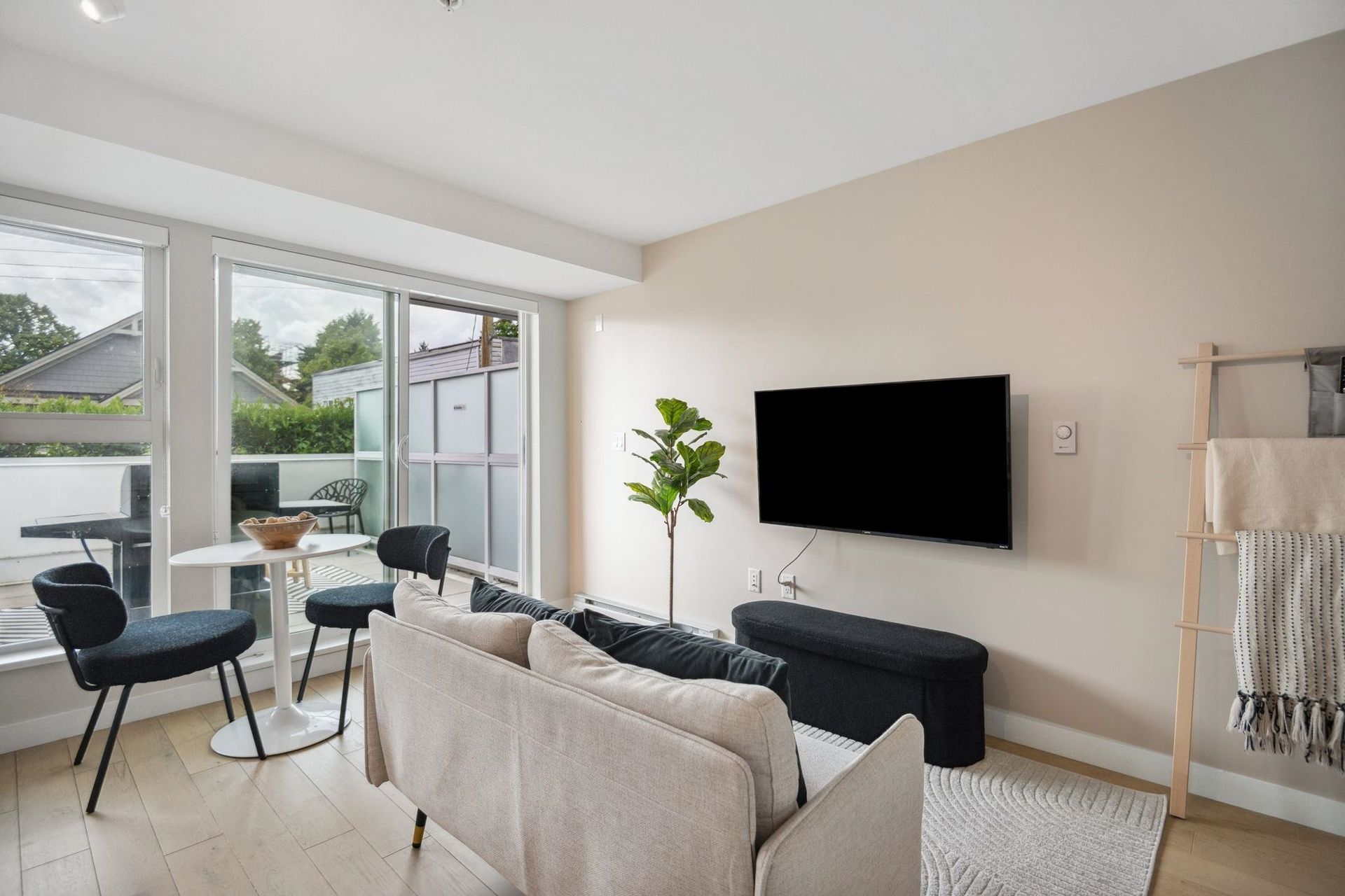 Welcome to Midtown Central by the Peterston Group/PortLiving.This boutique 35-unit building is perfectly located along the Broadway Corridor & Fraser Street. Situated on the quiet side of the complex, this like-new, fully furnished home features a spacious 167 sq ft balcony, unobstructed. Enjo