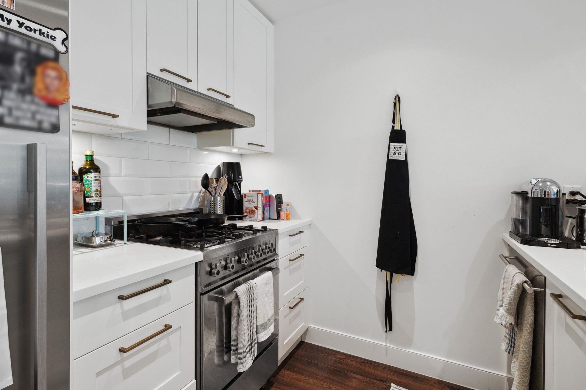 Welcome to James Walk by Mosaic! This two bed+den home is spacious, bright and has the perfect layout. Beautiful chef’s kitchen includes a Bertazzoni gas range, Fisher & Paykel fridge, quartz counters, shaker cabinetry, and white tile backsplash. Peninsul