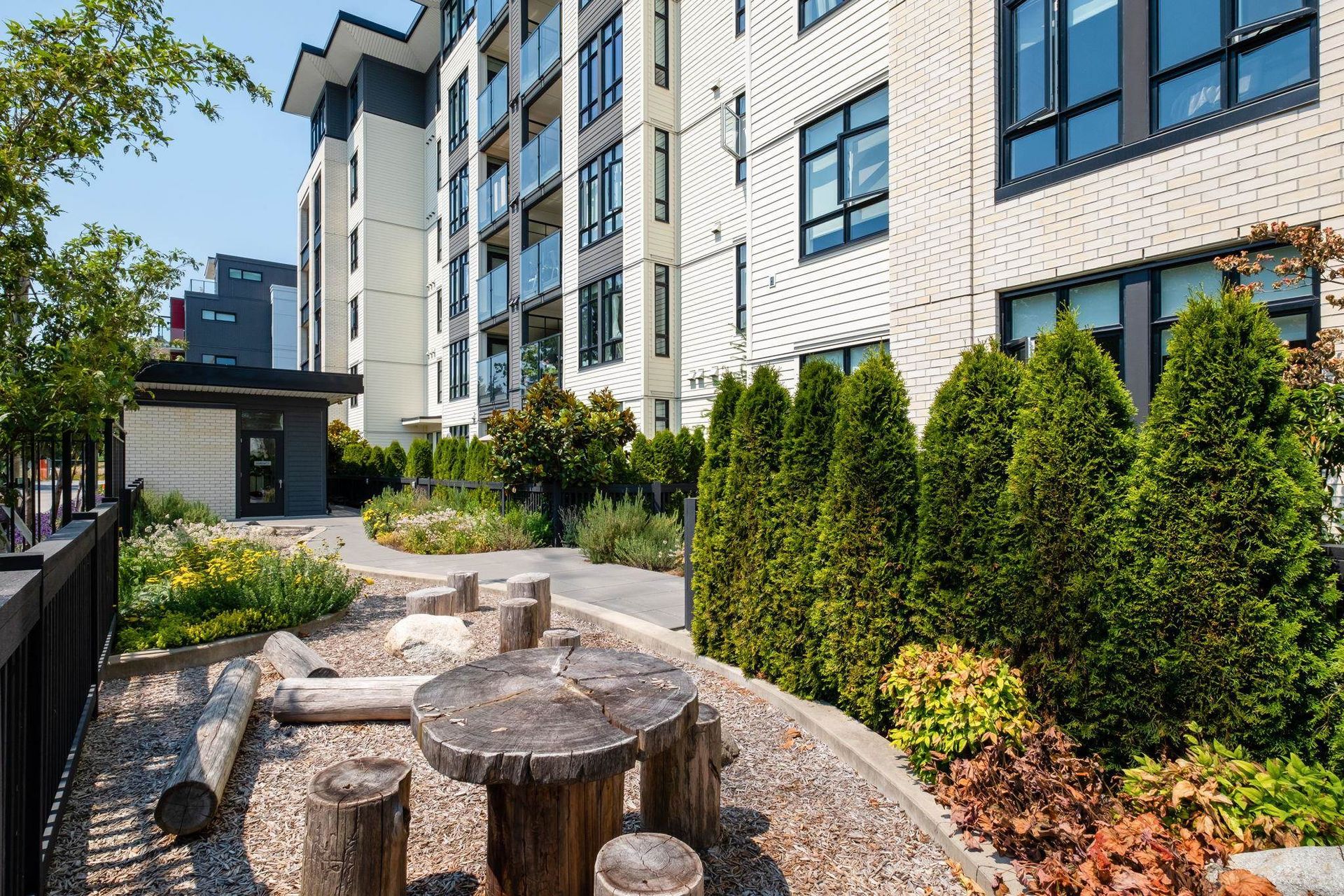 - Landscaped terraces and courtyards with garden plots for herbs and vegetables