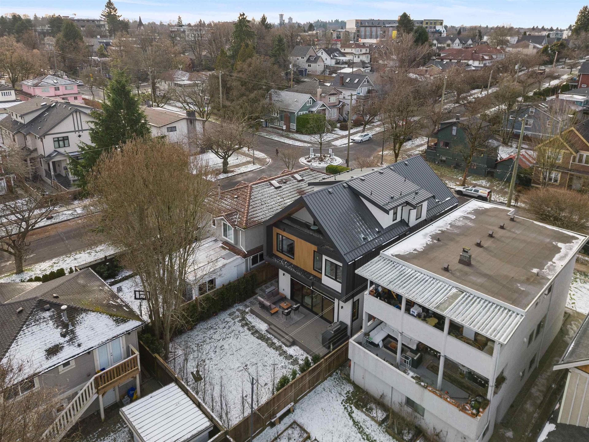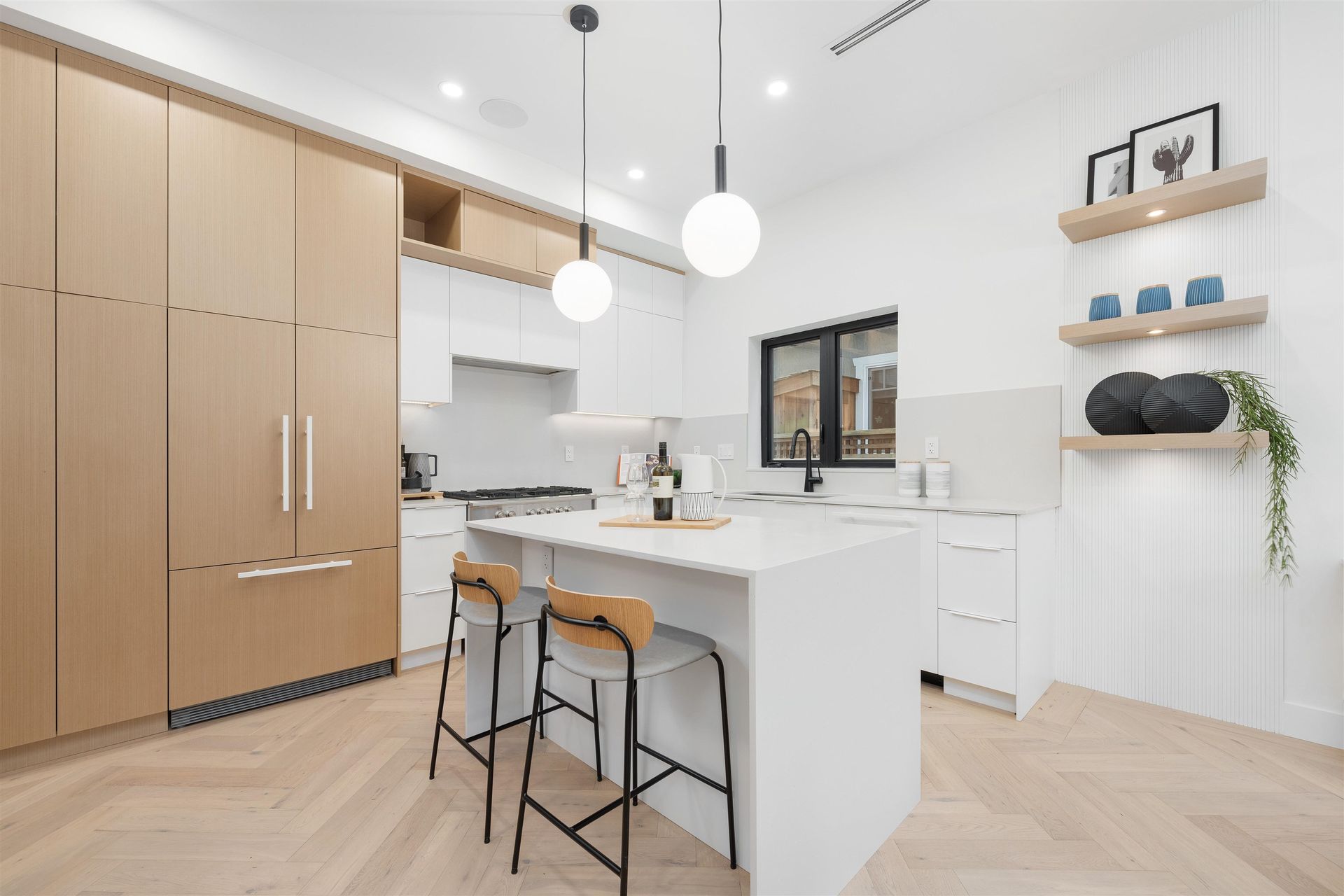 Nestled in Mount Pleasant’s coveted Cedar Cottage neighborhood, this newer Medallion Homes duplex dazzles with 4 bedrooms (3 on one level), 4 baths, and just under 1,700 sqft of stylish living. Built just last year, with NO GST applicable, this home features 10′ ceilings, herringbone hardwood, built‑in speakers, and a metal roof with modern cladding and AC. Enjoy the convenience of an attached garage, extra parking pad, vast crawl‑space storage, and premium appliances, all backed by a 2/5/10 warranty! Move-in ready!
