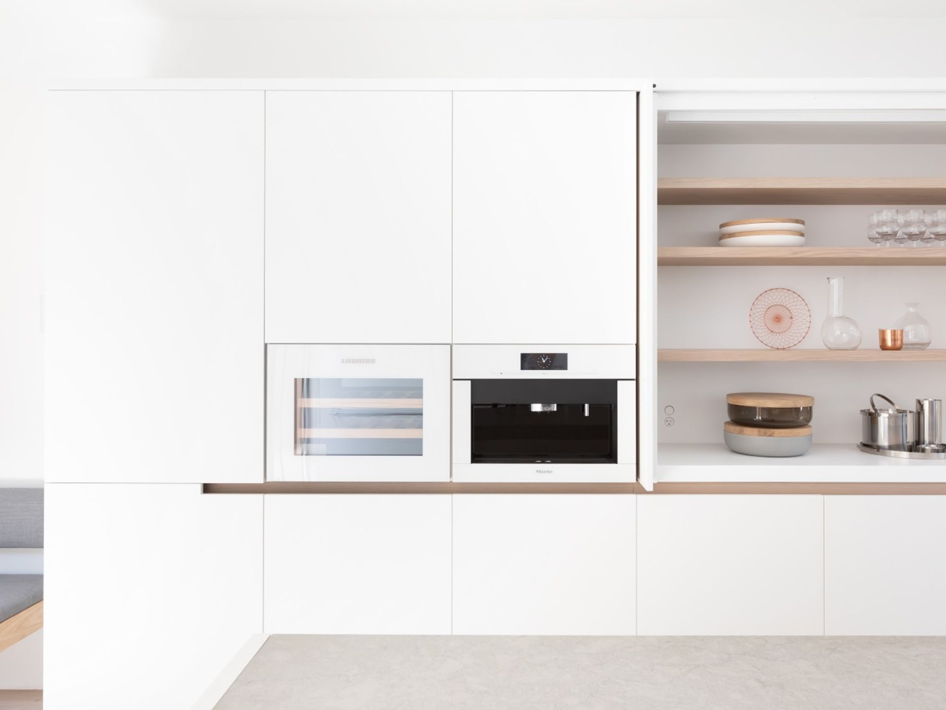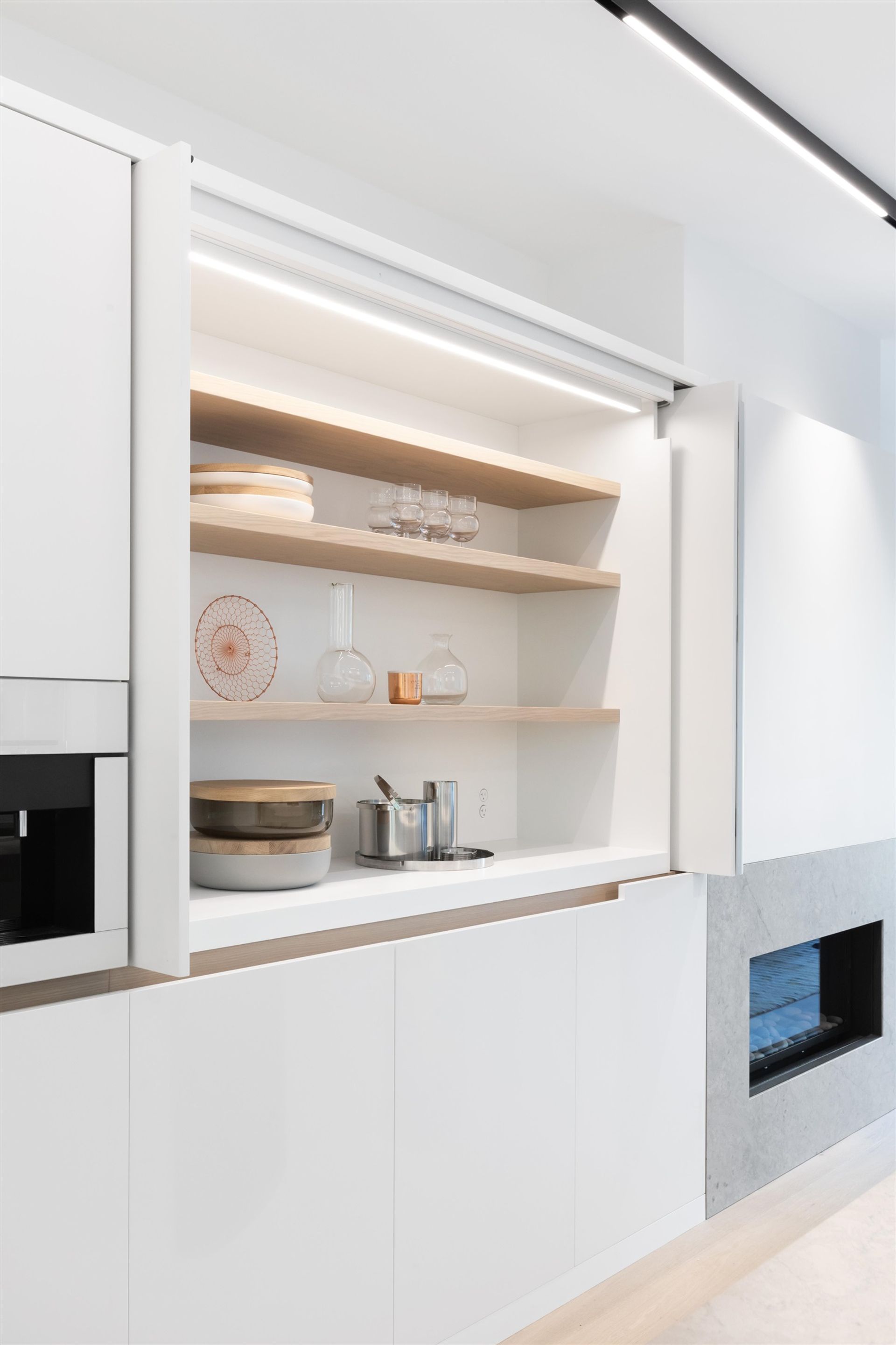 - Concealed bar area/appliance garage with Corian counter and bocci outlets concealed by beautiful custom doors that tuck away when you’re entertaining and want a bar area