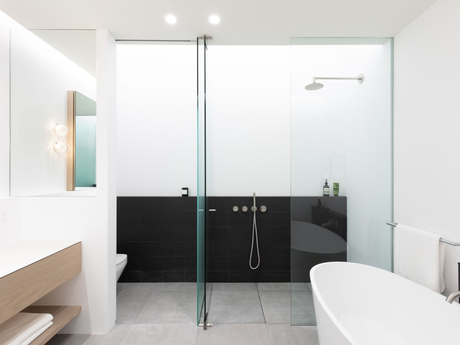 - Hand blasted glass between WC and shower in master, slowly fading into clear glass at the top for lighting/privacy purposes