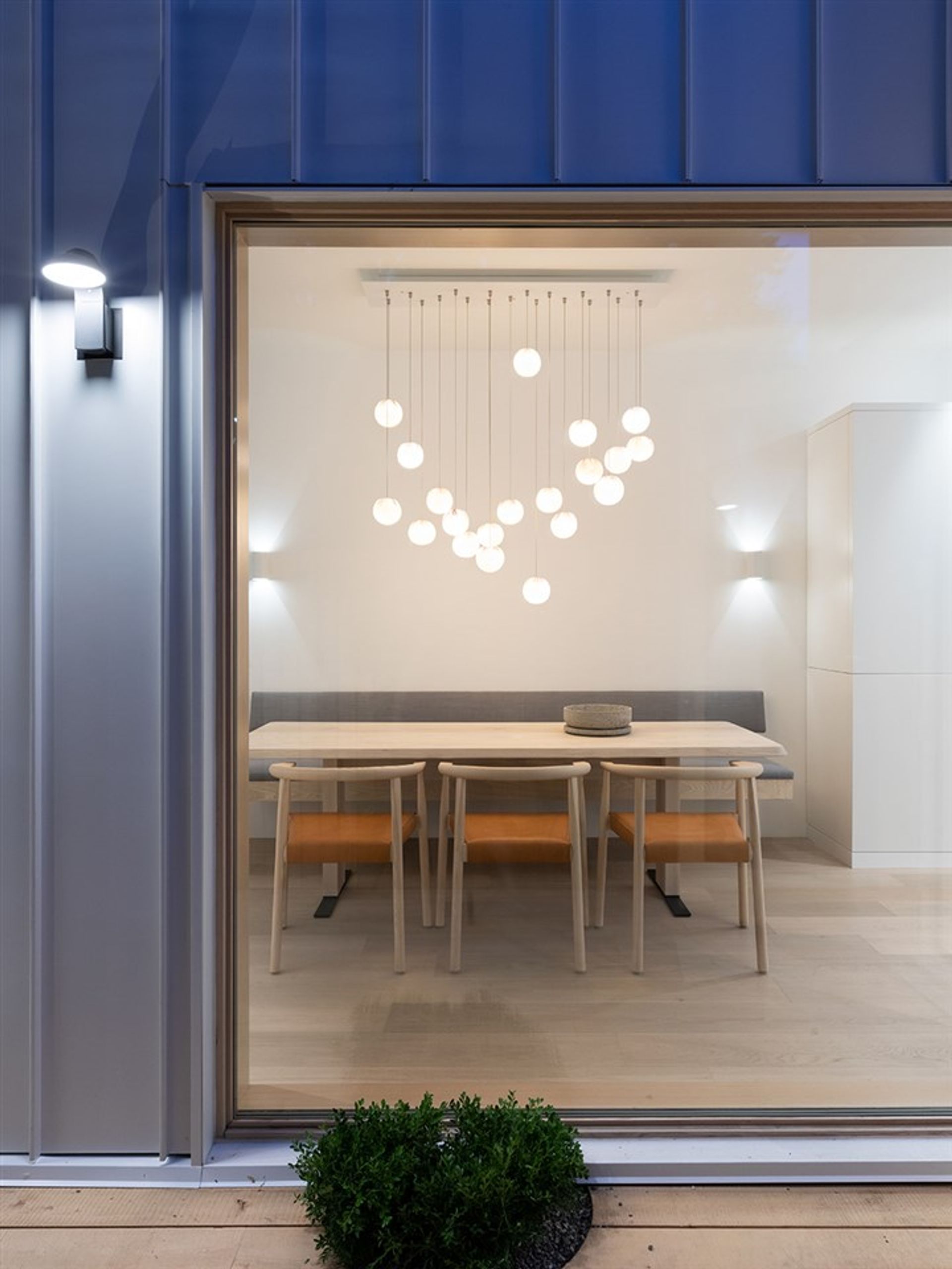 - Private courtyard between kitchen and entryway, surrounded on 3 sides by massive architectural windows, allowing natural light to pour in