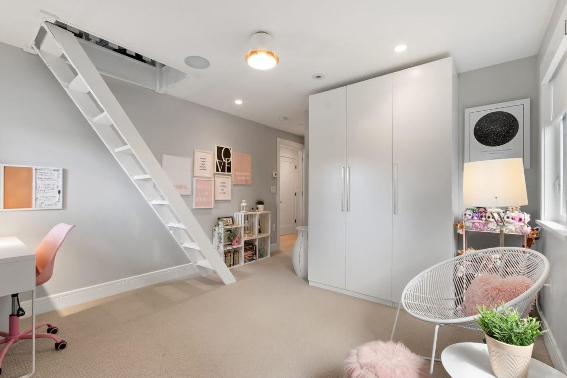- 2nd Bedroom with access to attic sitting area via ladder, attic storage and fixed wardrobe.