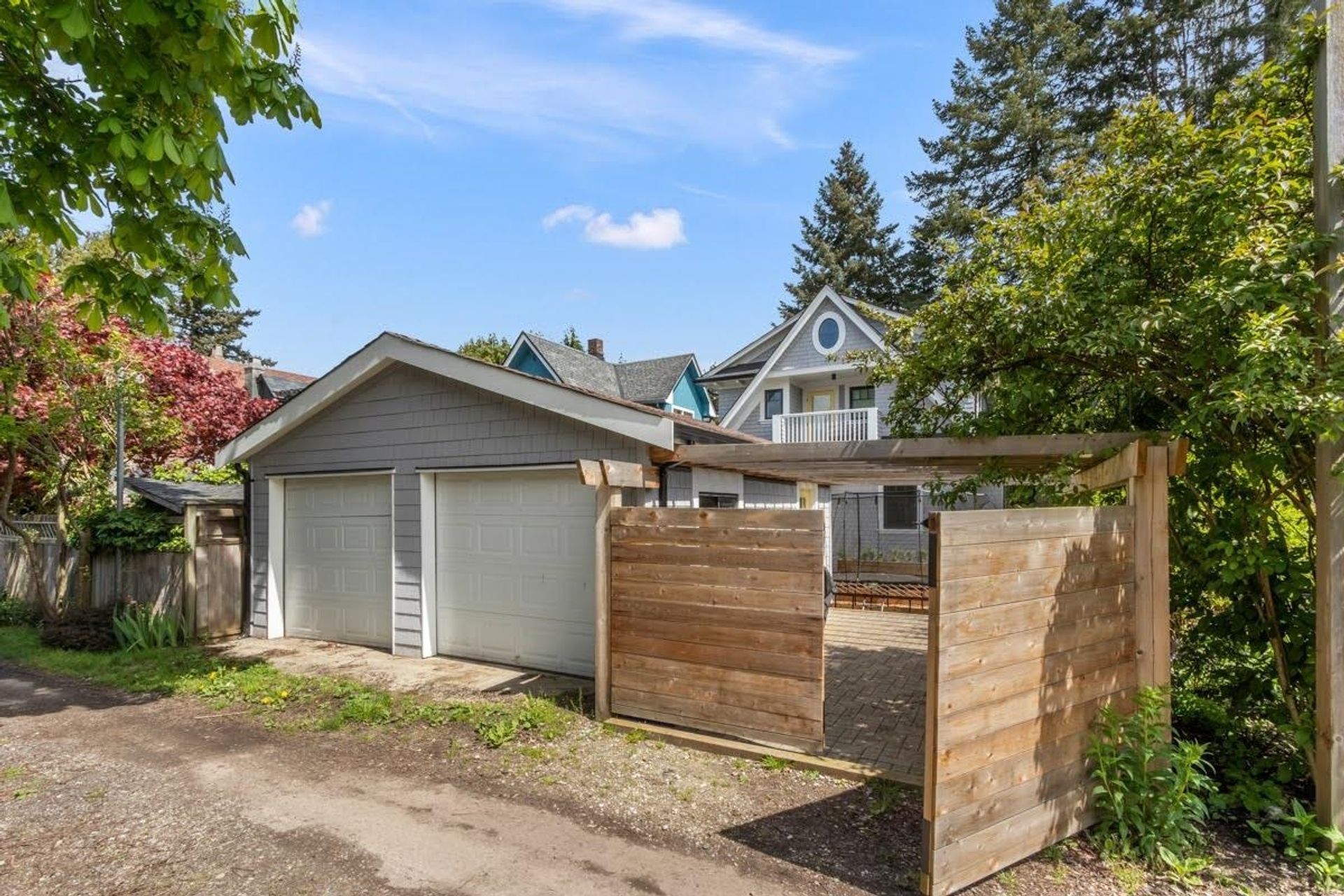 - Pergola attached to garage with outdoor sitting area