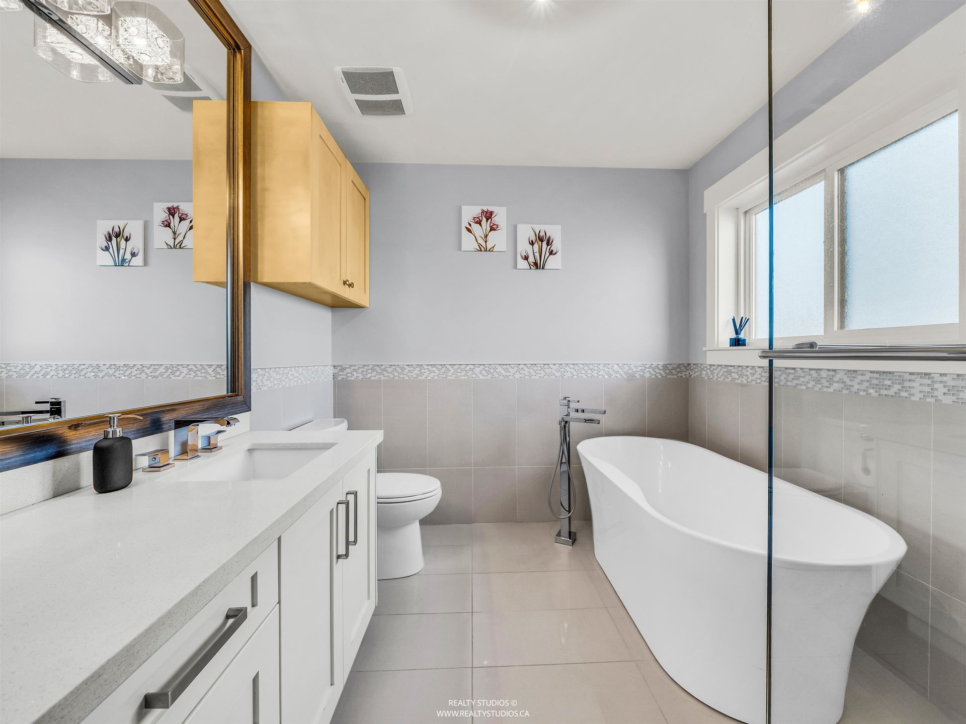 - 5-piece ensuite with double sinks, soaker tub, and stand-alone shower
