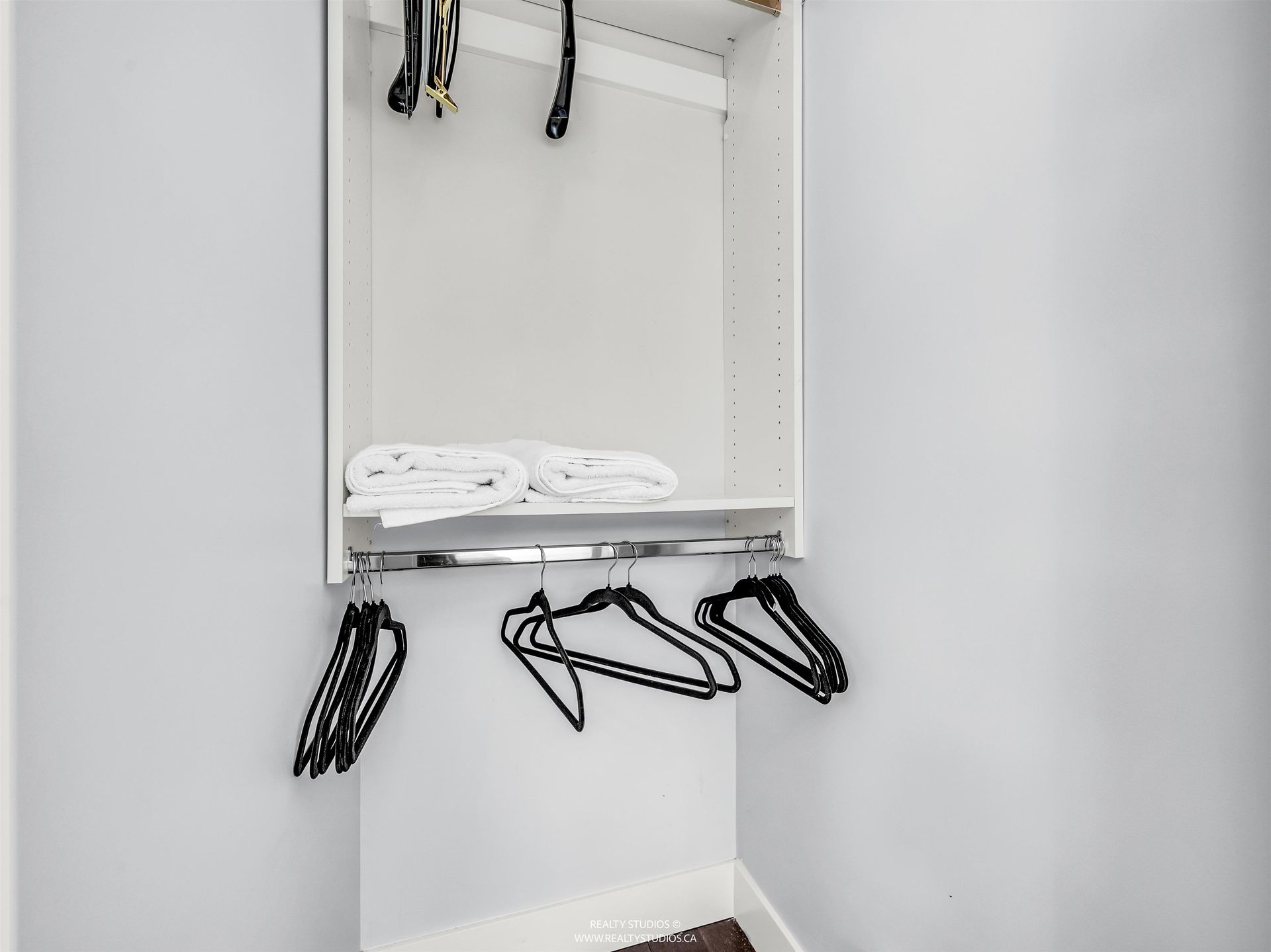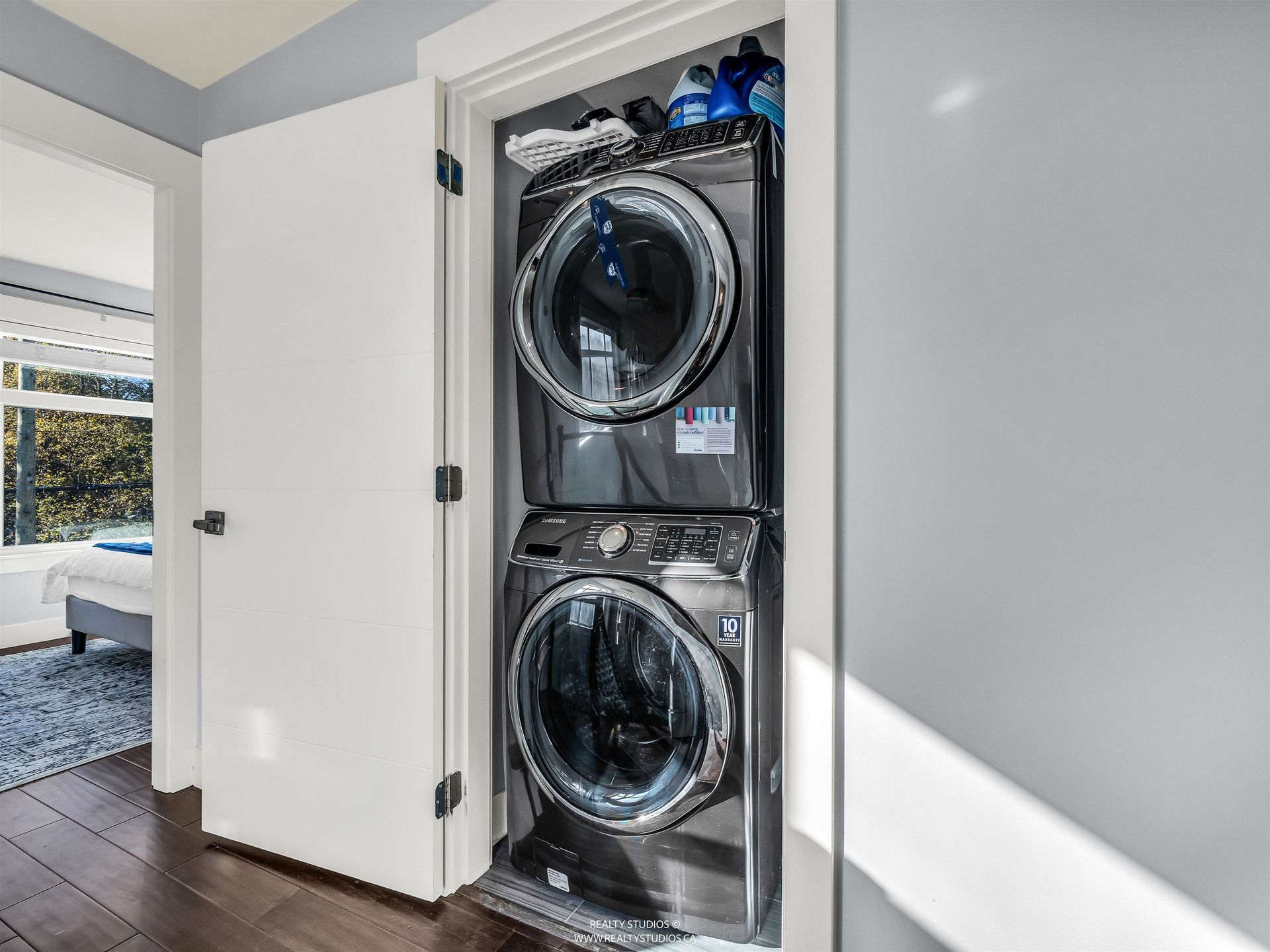 - Laundry closet with Samsung full-size stacker washer/dryer