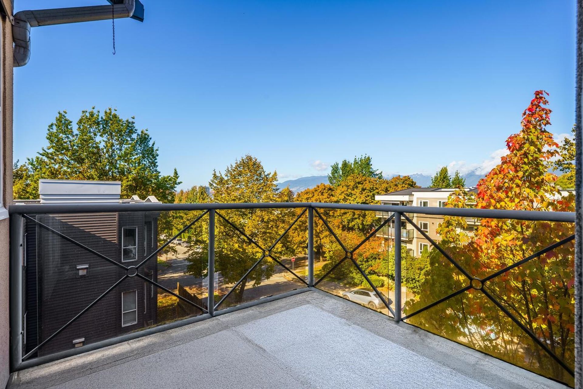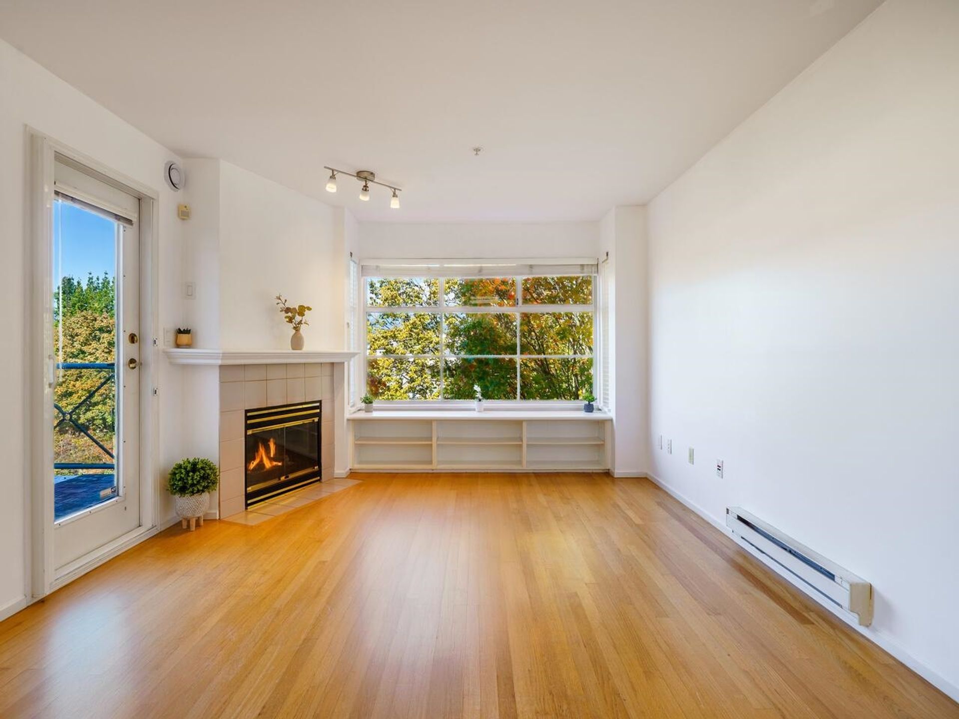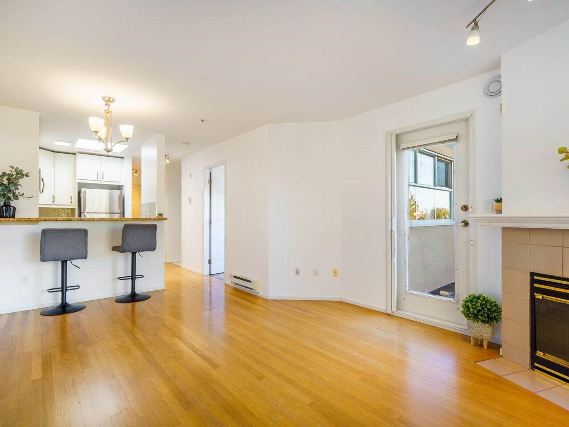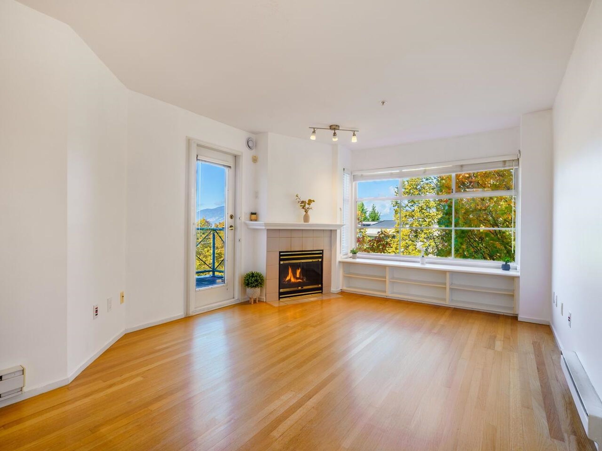 Bright and spacious 2 bedroom top floor corner unit rarely available at the Royal Alexandria complex. Northwest exposure featuring panoramic water, city, and mountain views! Real hardwood floors and two skylights that flood the space with natural light. Enjoy a cozy gas fireplace, open-concept layout, and a fully rainscreened building for peace of mind. Includes 1 parking and 1 storage. Steps to shops, restaurants, breweries, parks, and more — the perfect East Van lifestyle!