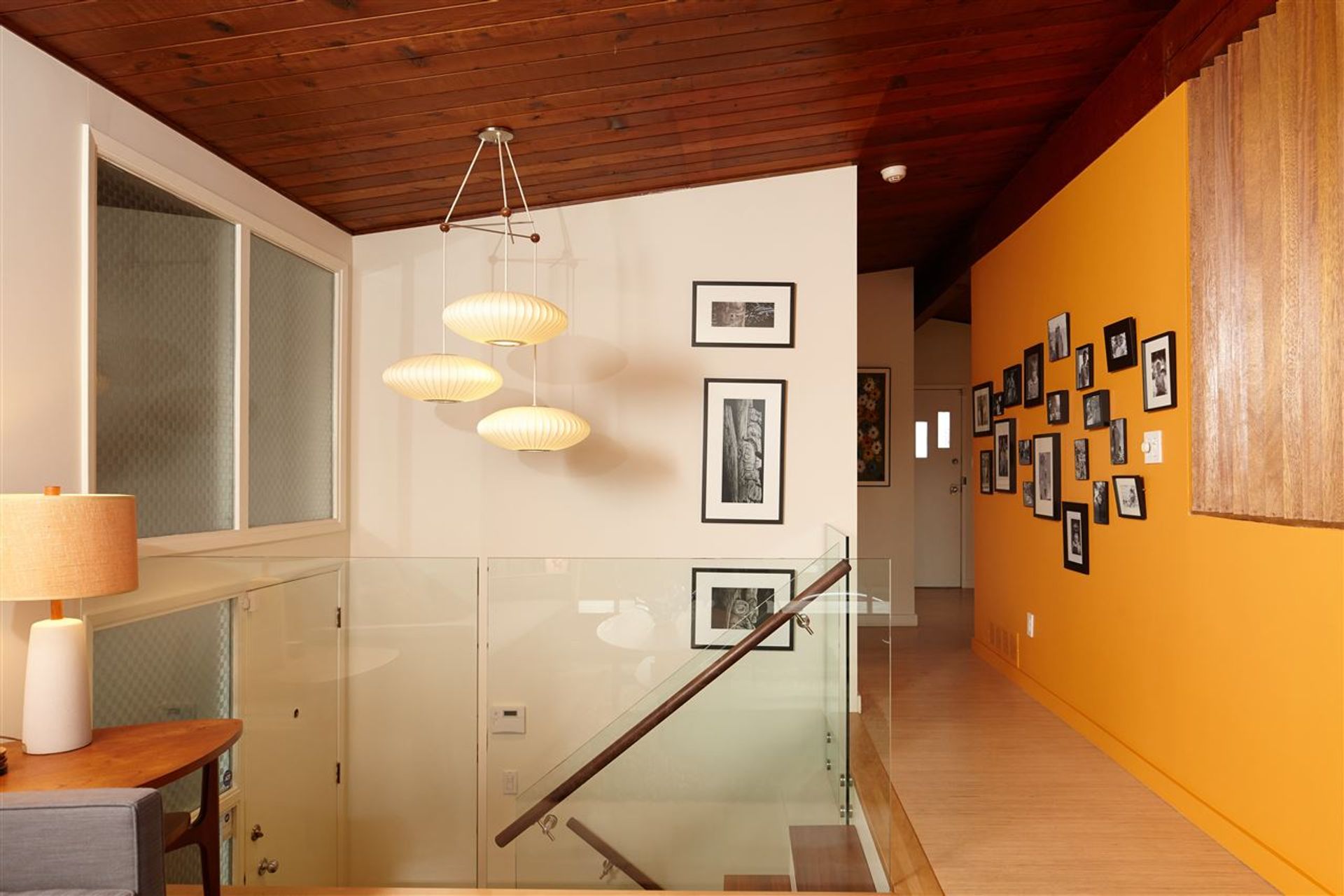 - Gorgeous glass stairwell divide lends to open feel