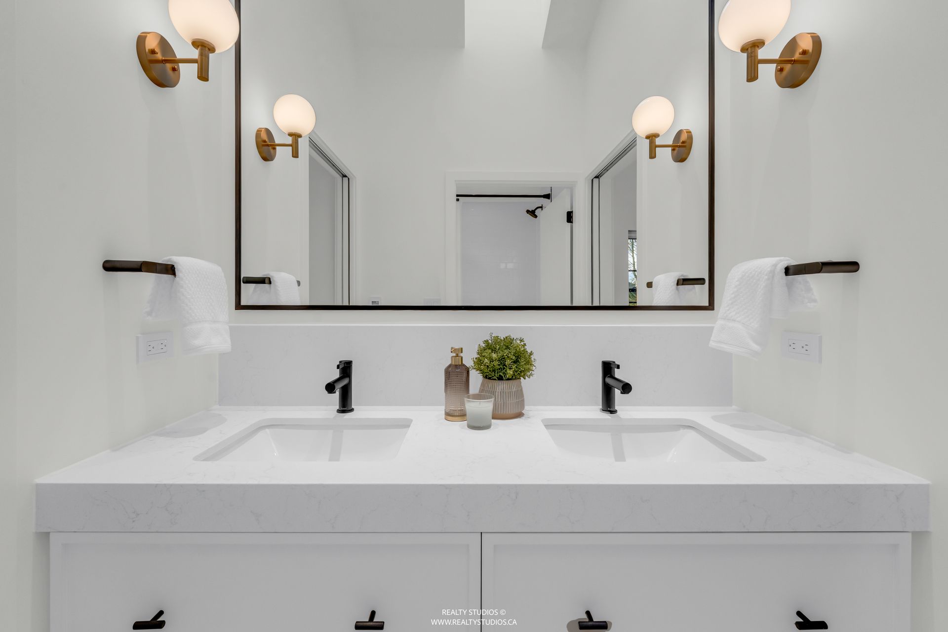 - Brushed brass, nickel, & gold faucets throughout