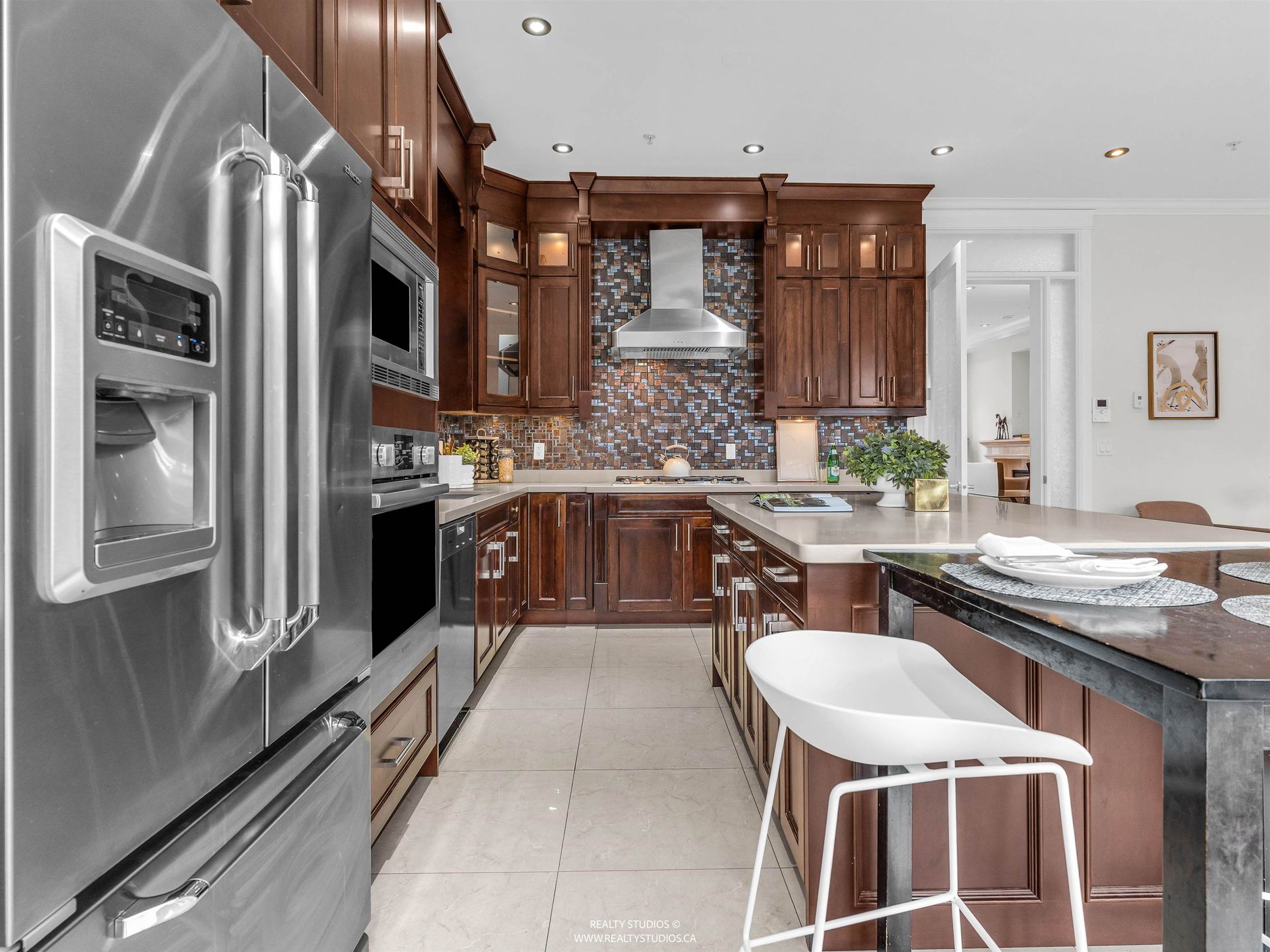 Quality 2011-built home with strong income potential, offering two legal suites plus a laneway home. The main residence features 11’ ceilings, engineered hardwood floors, radiant heating, and two gas fireplaces. Open living and dining areas with built-in storage connect to a well-appointed k