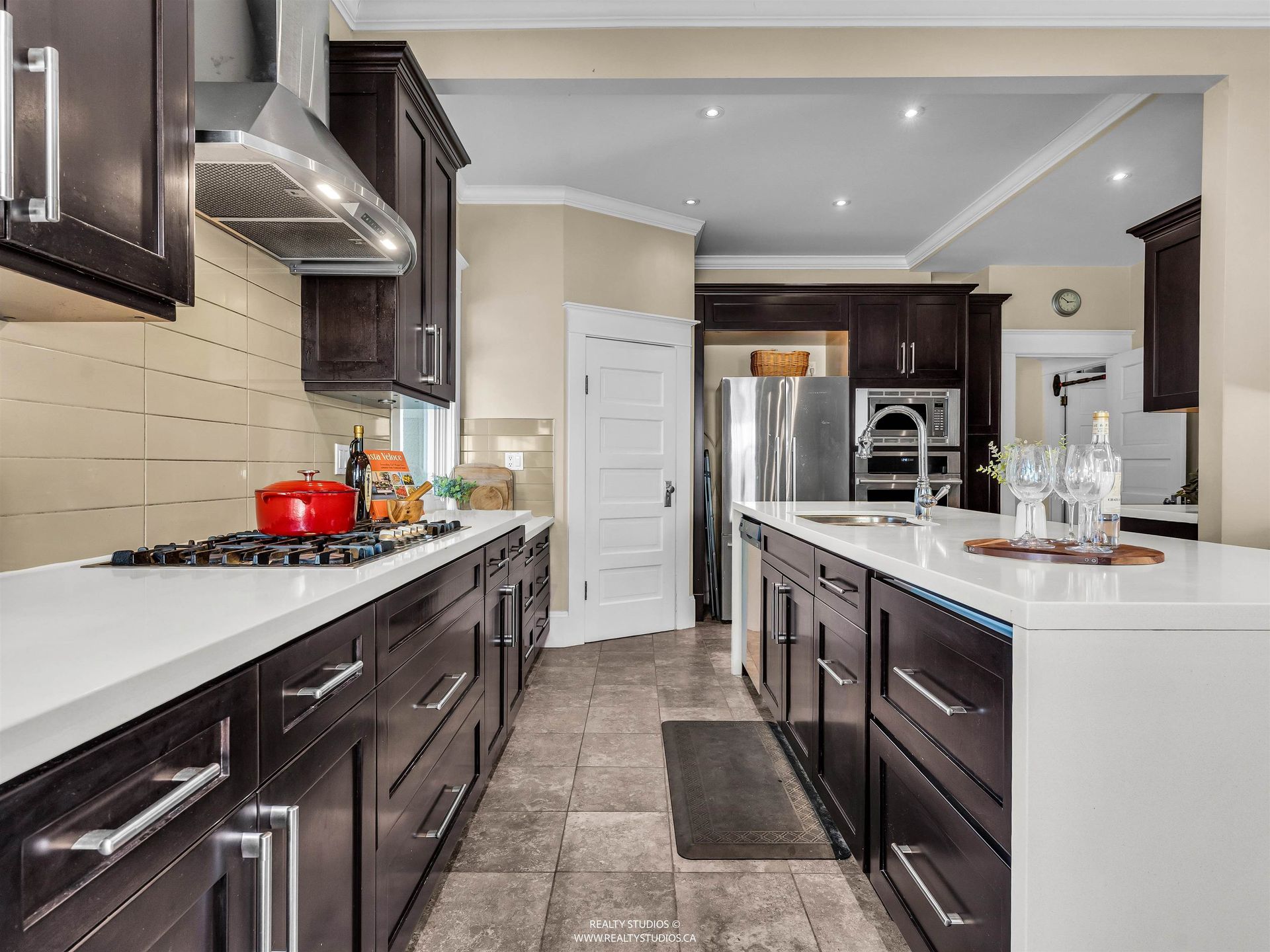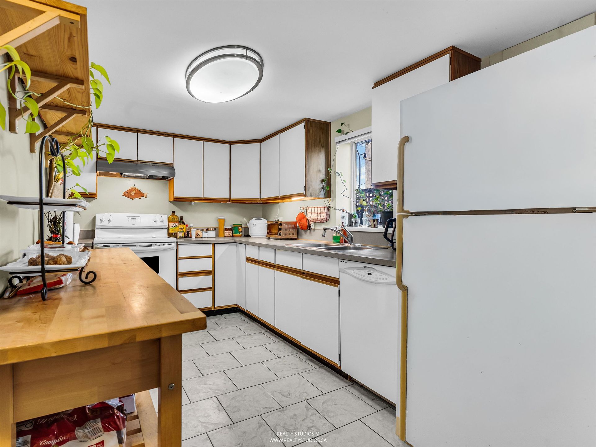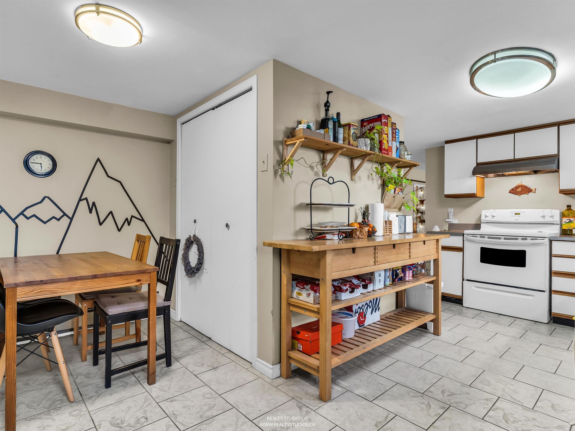 - Tile flooring in kitchen
