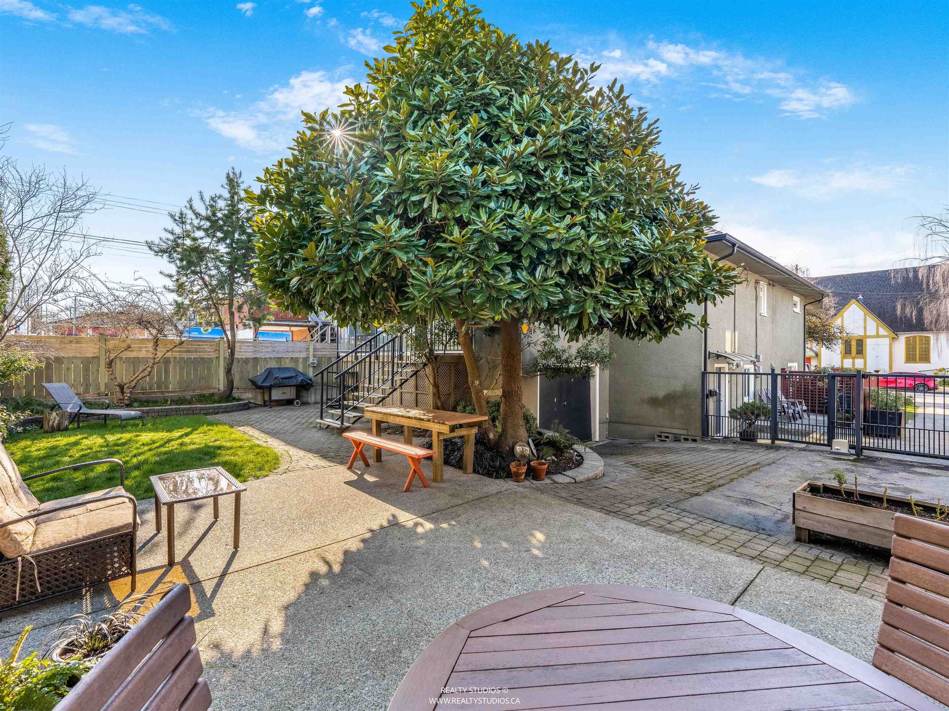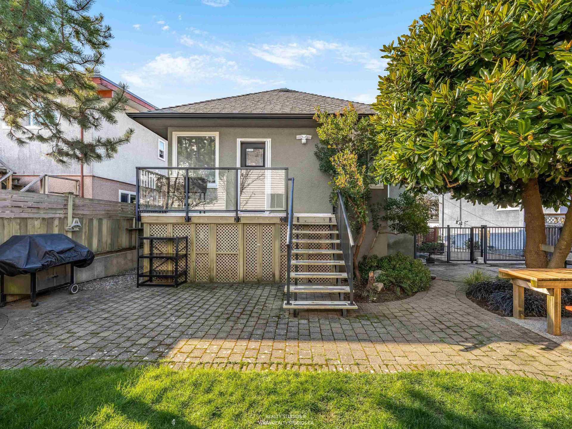 - Large backyard grass and stone pavers
