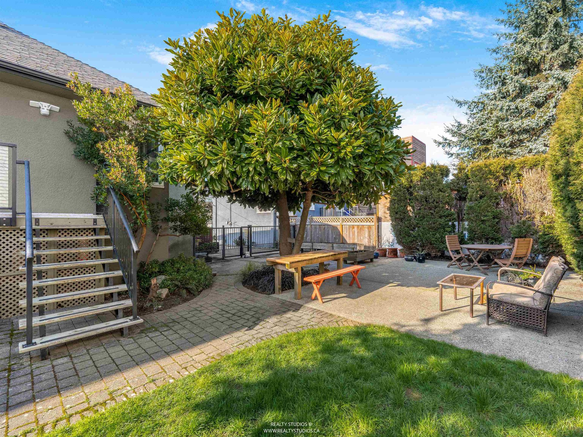 - Mature trees and landscaping