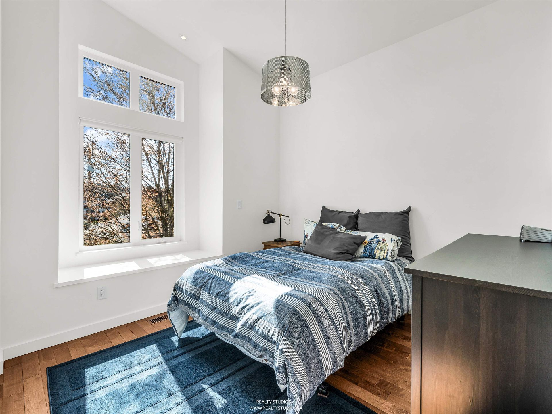 - Custom roller shades throughout