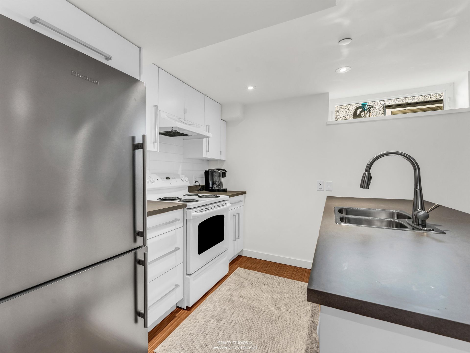 - Sleek white Quartz counters