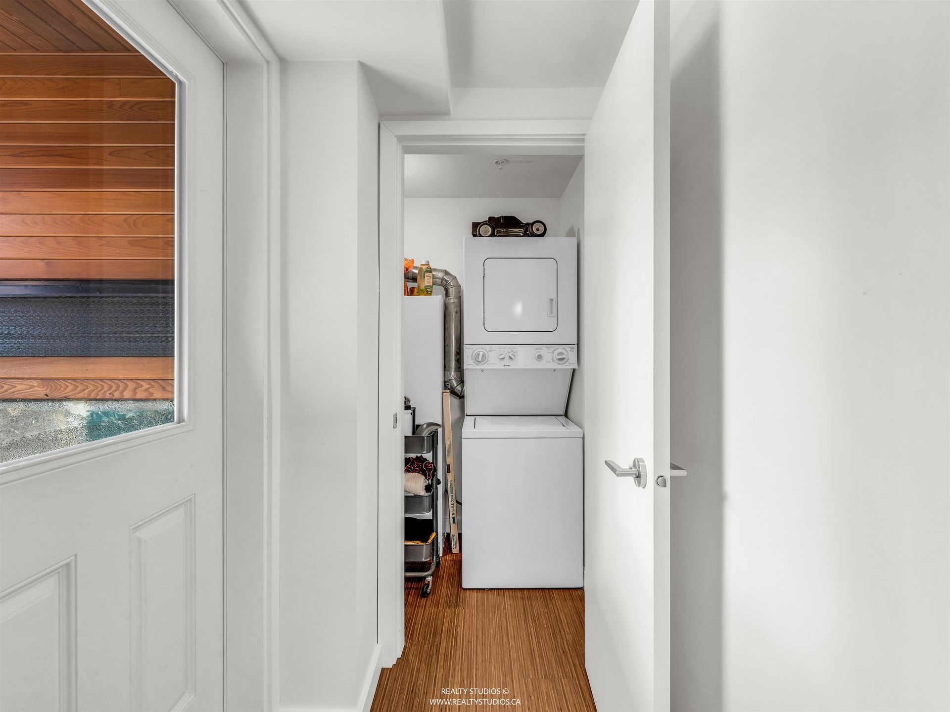 - Separate large laundry room with front loading Samsung washer and steam dryer